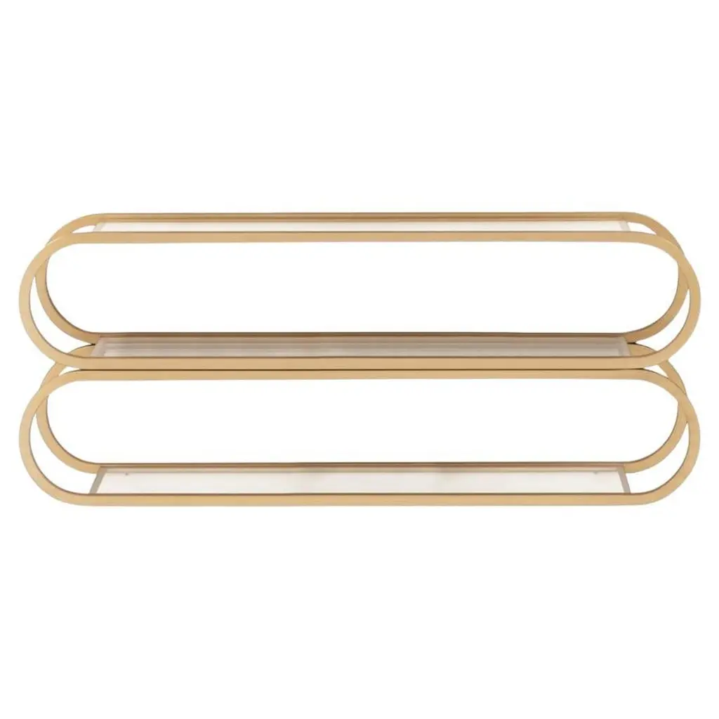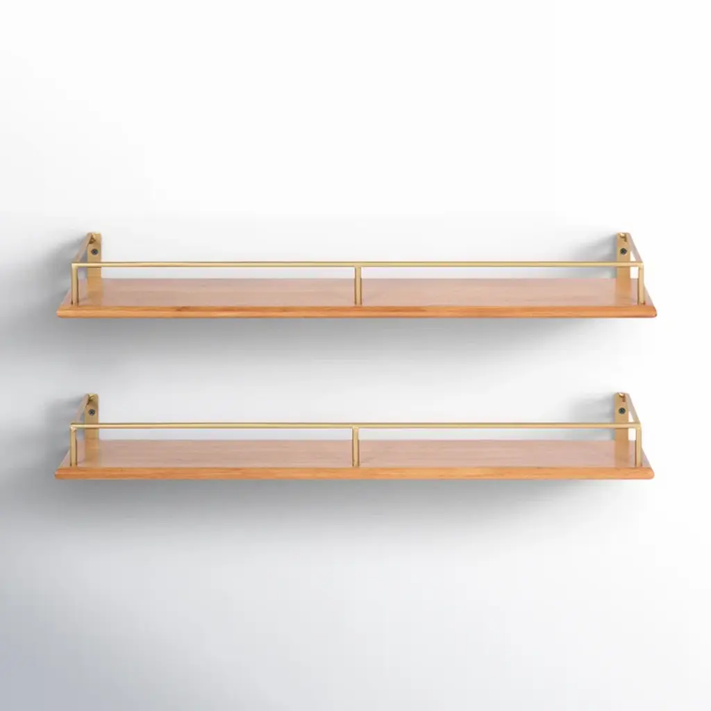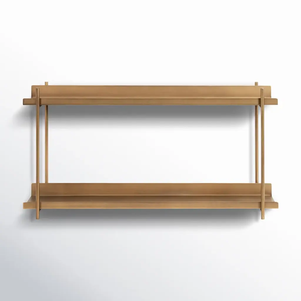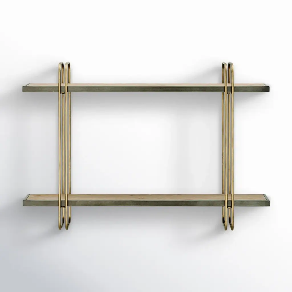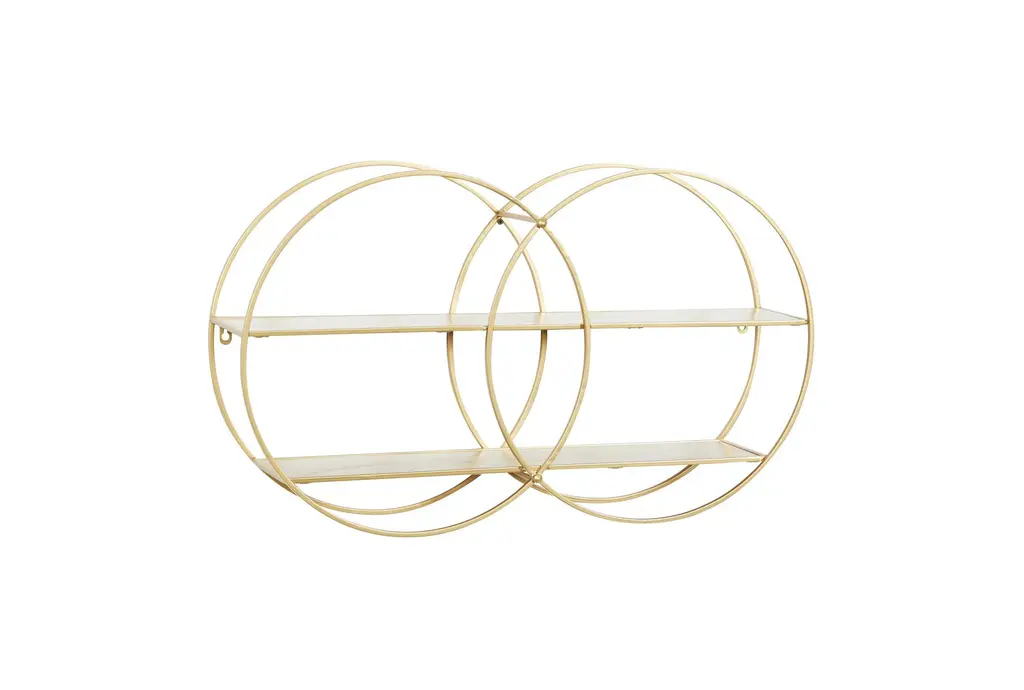 Show off sculptures and snapshots in a streamlined style with this circular wall shelf. A contemporary and industrial design, this shelving unit pairs a double round iron frame with 4 solid wood shelves for a touch of contrast. Whether hung in your living room, entryway, or bathroom, this unique piece acts as the perfect platform for displaying collected curios, perfumes, nail polish, hair accessories, and more. This handy wall shelf is an eye-catching focal point in any room.