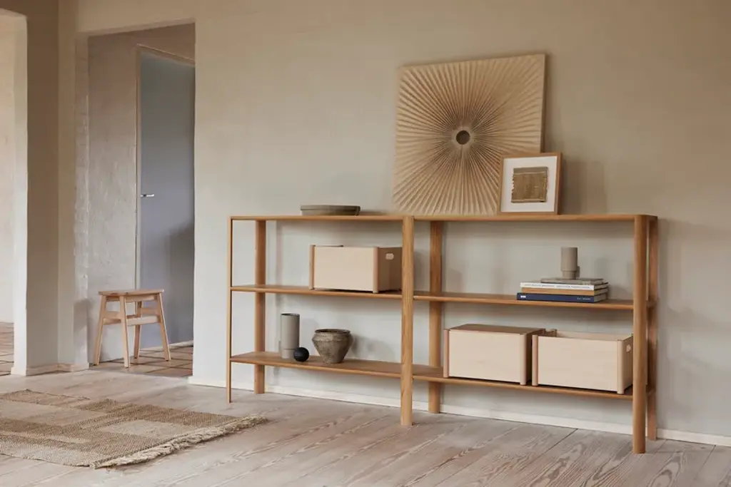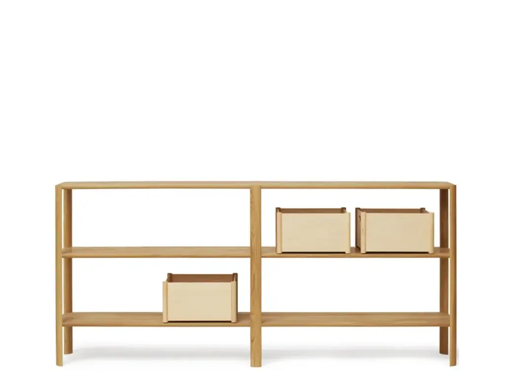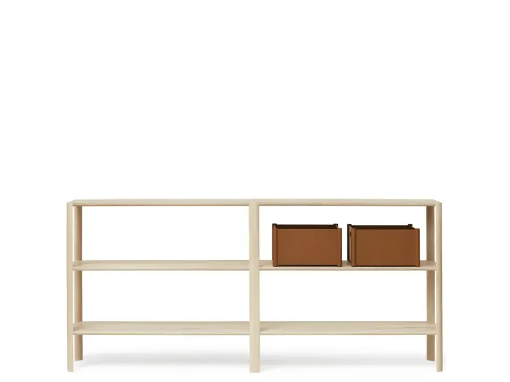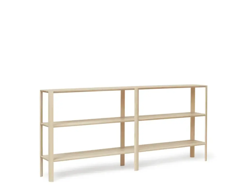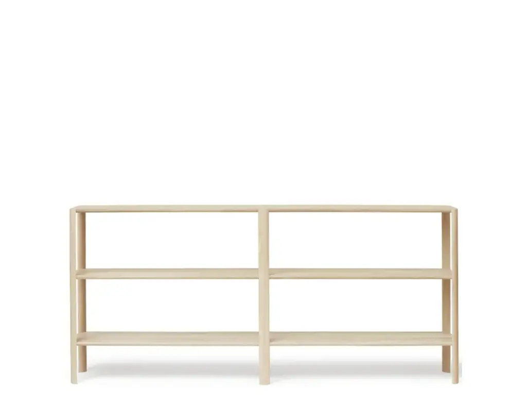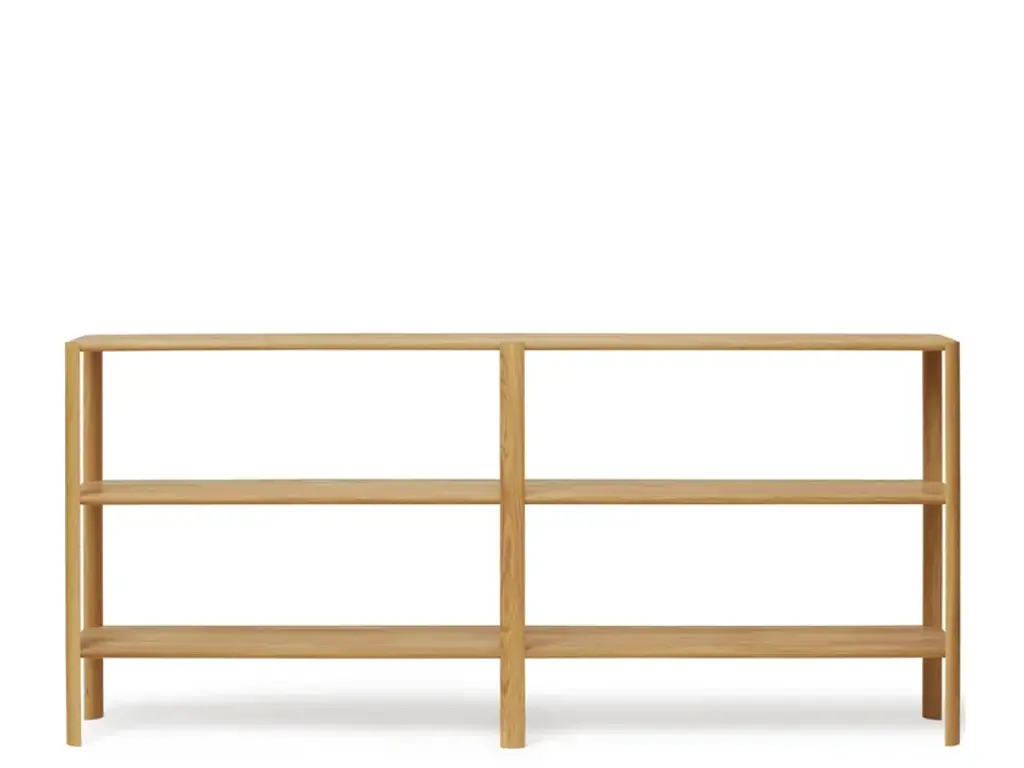 The Leaf is an attempt to create a shelving system that strikes the ultimate balance between aesthetics, stability and packability . It is characterised by a very pure aesthetic, the aim being that the leg pillars are the centre of attention. With an organic and clean expression being sculpted in the shape of a leaf they give the system its signature look. The construction itself is also breaking ground in terms of stability, as it is entirely contained without any visible screws or extra stabilising parts underneath the shelf. The versatile design means the shelf looks great from all angles, therefore it can be used as a sideboard, free standing shelving or as a room divider.“I like the convenience of flat pack shelves, but often I find them lacking either in aesthetics or stability. The Leaf shelf is my attempt to create a shelving system striking an ultimate balance between aesthetics, stability and packability. My intention is for this shelving system to come in many different heights and widths, suitable for a wide range of homes and businesses.” Jonas Lutz