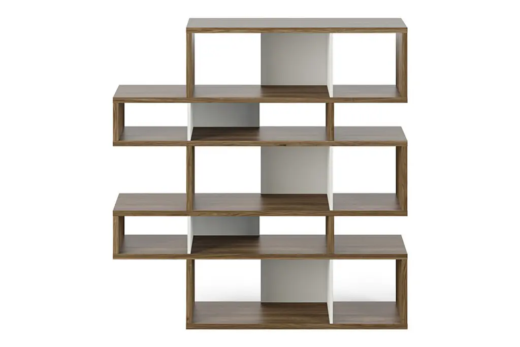 Create versatile storage and display space in any room while enhancing the elegant, contemporary design of your home with the uniquely designed London Composition 002 by Tema Home. Fusing everyday function with chic, distinctive style, this modern shelving unit features a fresh, contemporary design that includes five unevenly stacked shelves that create both a unique look and versatile storage and display space perfect for books and other media, framed photos, vases and sculptures, magazines and other personal decor! If its style isn't already unique enough, the London Composition 002's frame and back panel finishes can be customized to accommodate your taste and complement your decor. Choose the same color for both to create a consistent look or mix and match for a style that's more aesthetic and unique!