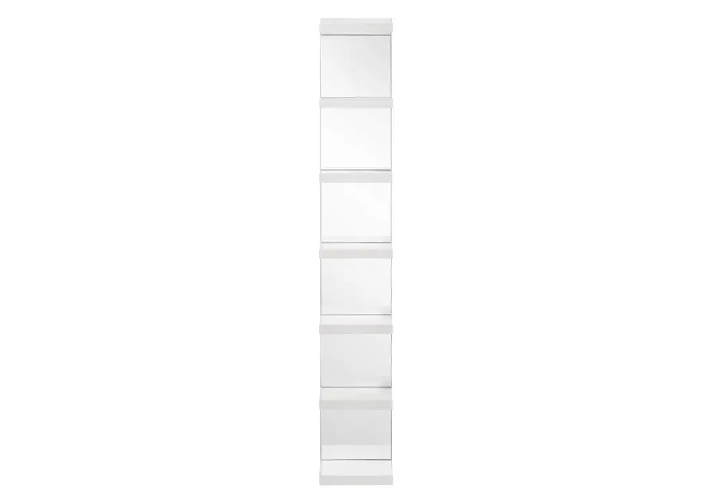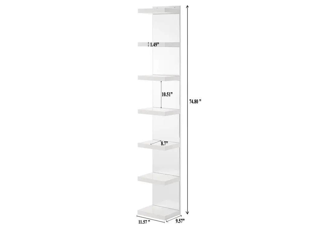 This sleek, modern shelving unit offers a perfect blend of style and functionality, making it a versatile addition to any room. With clean, minimalist lines and a crisp, white finish, it seamlessly complements contemporary decor, adding a touch of elegance and sophistication to your space. Each spacious shelf is designed to showcase your favorite decorative pieces, plants, or books, providing a visually appealing display while maintaining an open and airy feel. The mirrored back lets you see more of your treasures and bounces light around the room. Its sturdy structure ensures stability, allowing you to store and exhibit items confidently. Ideal for living rooms, home offices, or reading nooks, this shelving unit enhances any space with its refined aesthetic and practical design, embodying both beauty and utility in one piece. Weight 45.100 lbs. (20.3kgs.)