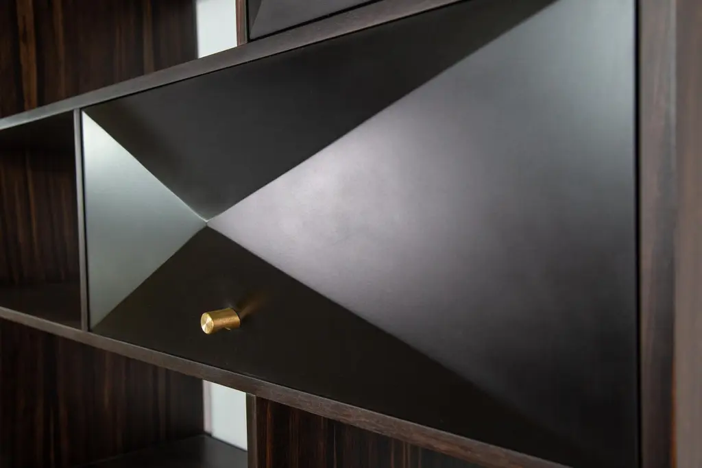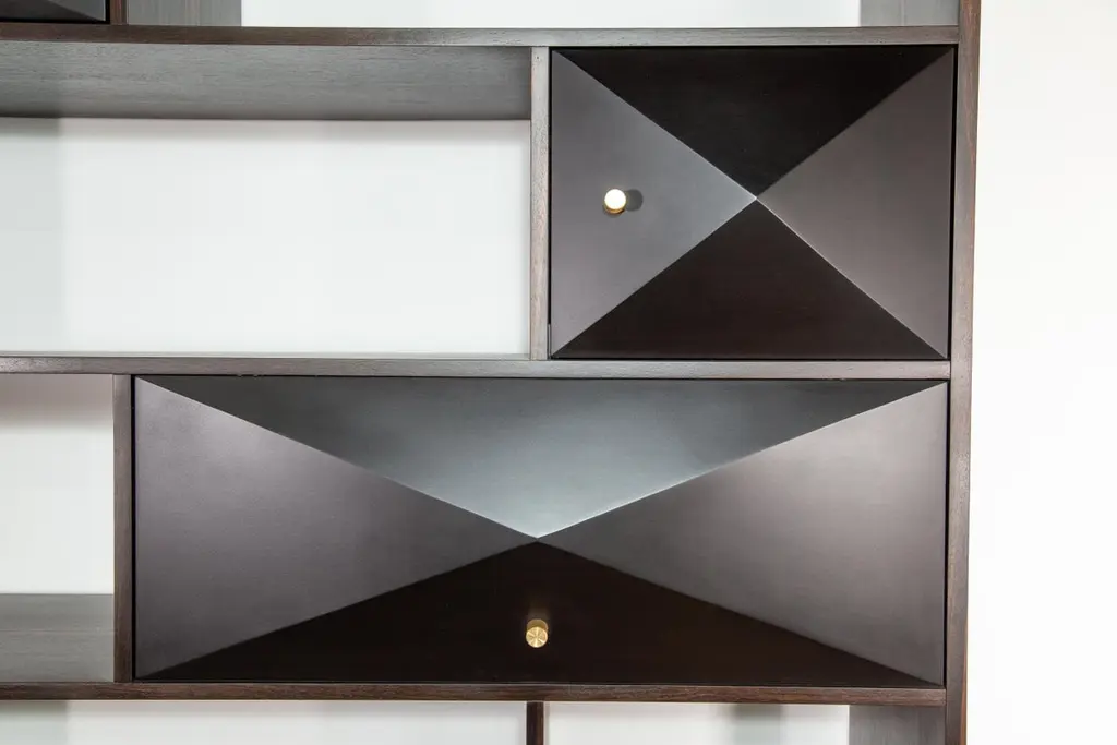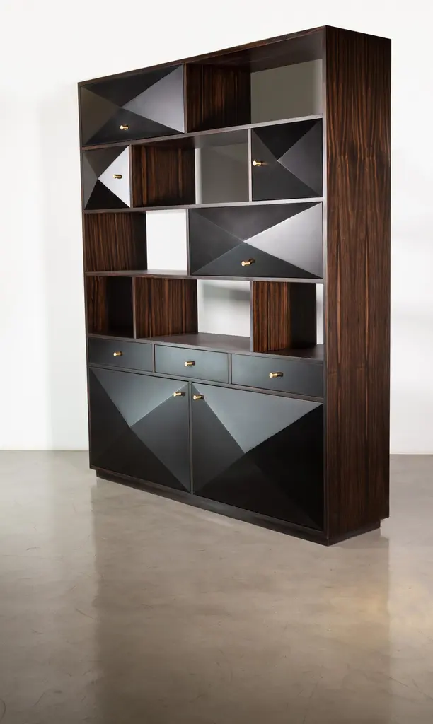 Macassar Ebony Modern Shelf Unit With Bronze Pulls From Costantini, Zeno