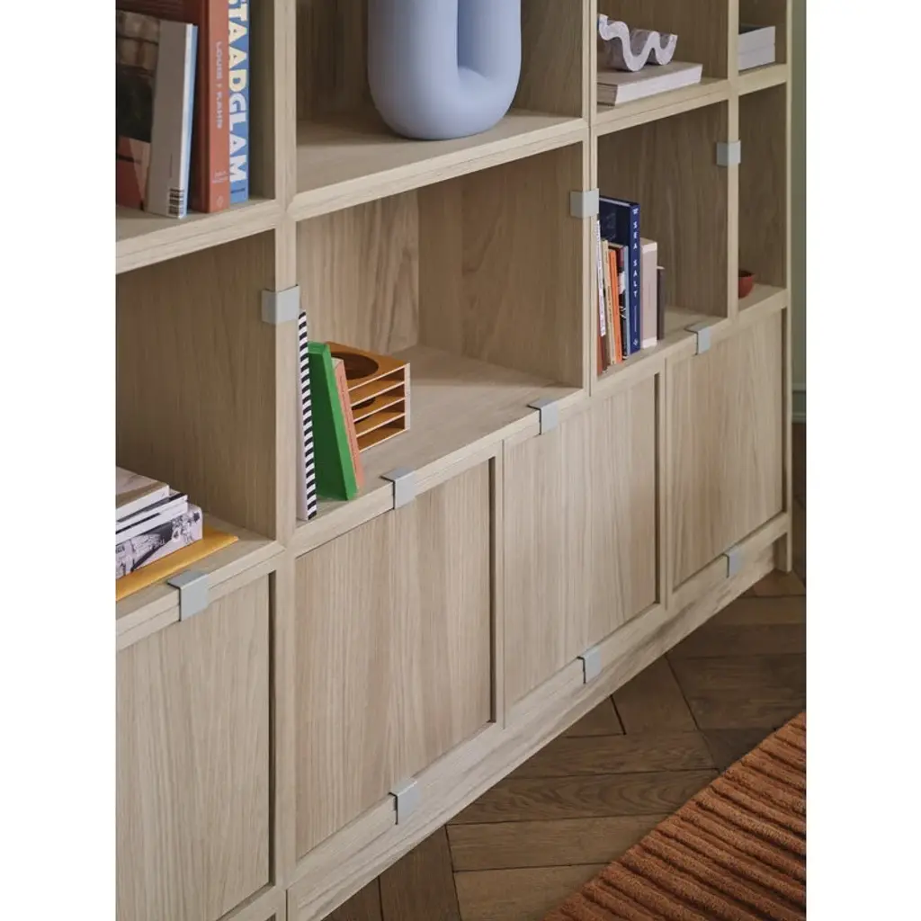 Muuto’s Mini Stacked is the smaller but equally flexible version of the original Stacked shelving system. With the Mini Stacked modules, you can create stylish wall mounted storage elements in the kitchen, hallway, living room, bedroom and office. Julien De Smedt Architects aimed at creating a shelving system that is both specific and generic at the same time: the shelving units were dimensioned based on the most generic measurements of things to store, but the final result is completely up to you. It can be a stack of boxes in different sizes and colors, a simple and well-coordinated grid, or a combination of both. Stacked 2.0 is an upgraded version of Muuto's popular Stacked collection, and it is manufactured in Europe. In the Stacked 2.0 units, the ash veneer has been replaced by oak and the gray color comes in a warmer tone than before. Other colors may differ slightly from the previous collection. Muuto doesn’t recommend mixing together new and old Stacked units.
