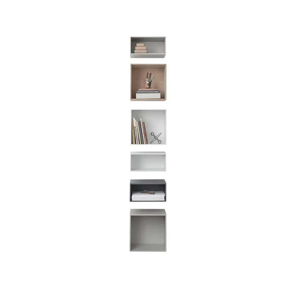 Muuto’s Mini Stacked is the smaller but equally flexible version of the original Stacked shelving system. With the Mini Stacked modules, you can create stylish wall mounted storage elements in the kitchen, hallway, living room, bedroom and office. Julien De Smedt Architects aimed at creating a shelving system that is both specific and generic at the same time: the shelving units were dimensioned based on the most generic measurements of things to store, but the final result is completely up to you. It can be a stack of boxes in different sizes and colors, a simple and well-coordinated grid, or a combination of both. Stacked 2.0 is an upgraded version of Muuto's popular Stacked collection, and it is manufactured in Europe. In the Stacked 2.0 units, the ash veneer has been replaced by oak and the gray color comes in a warmer tone than before. Other colors may differ slightly from the previous collection. Muuto doesn’t recommend mixing together new and old Stacked units.