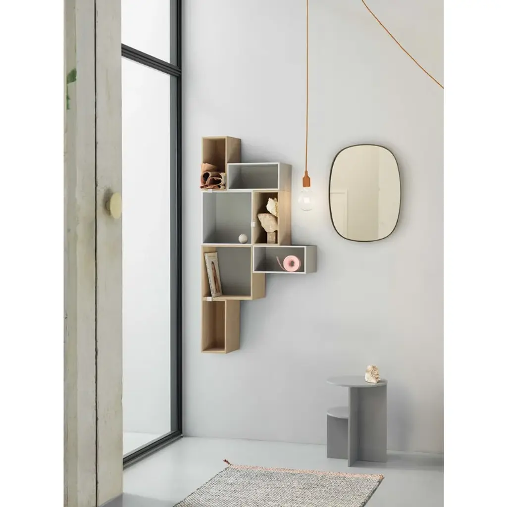 Muuto’s Mini Stacked is the smaller but equally flexible version of the original Stacked shelving system. With the Mini Stacked modules, you can create stylish wall mounted storage elements in the kitchen, hallway, living room, bedroom and office. Julien De Smedt Architects aimed at creating a shelving system that is both specific and generic at the same time: the shelving units were dimensioned based on the most generic measurements of things to store, but the final result is completely up to you. It can be a stack of boxes in different sizes and colors, a simple and well-coordinated grid, or a combination of both. Stacked 2.0 is an upgraded version of Muuto's popular Stacked collection, and it is manufactured in Europe. In the Stacked 2.0 units, the ash veneer has been replaced by oak and the gray color comes in a warmer tone than before. Other colors may differ slightly from the previous collection. Muuto doesn’t recommend mixing together new and old Stacked units.
