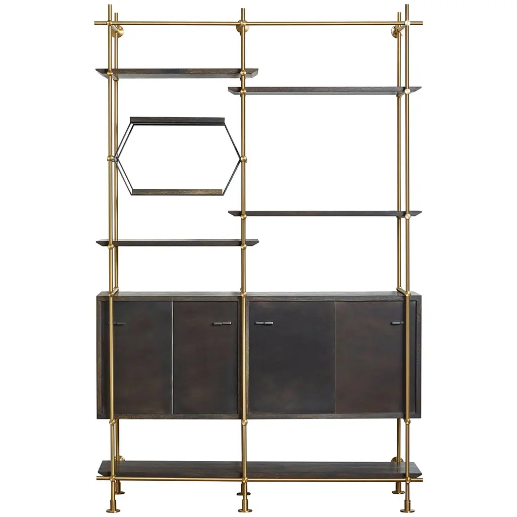 Oak And Brass Bookcase Shelving With Credenza By Amuneal