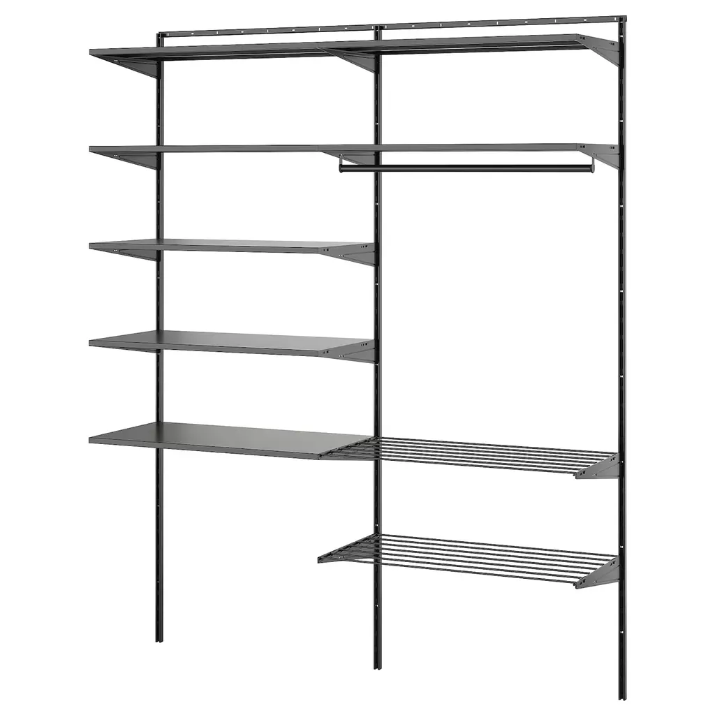 OMAR Shelving unit with clothes rail - with 1 shelf/galvanized 73 1/4x19 5/8x79 1/8 ". OMAR storage system is easy to assemble, and regardless of what you choose to store, the contents are easy to see and access. Also sits securely on an uneven floor since the feet can be adjusted.