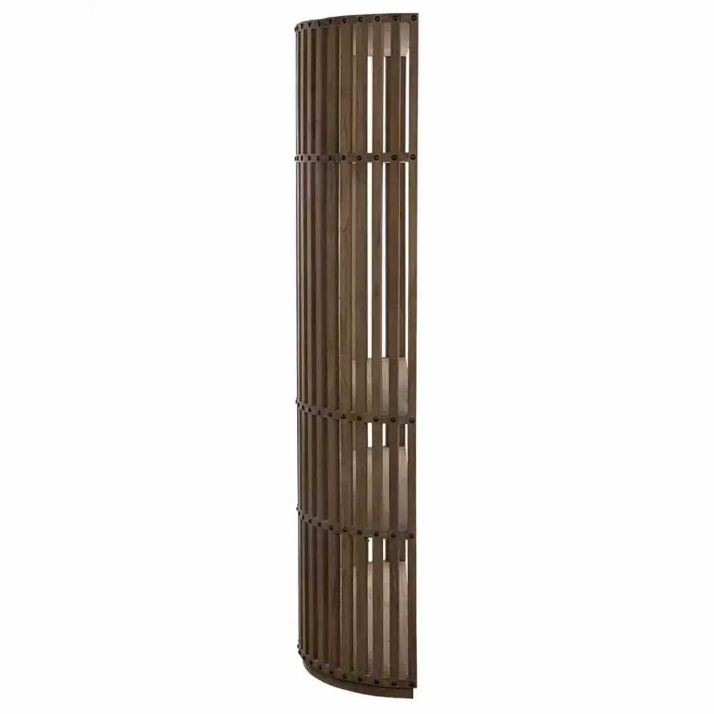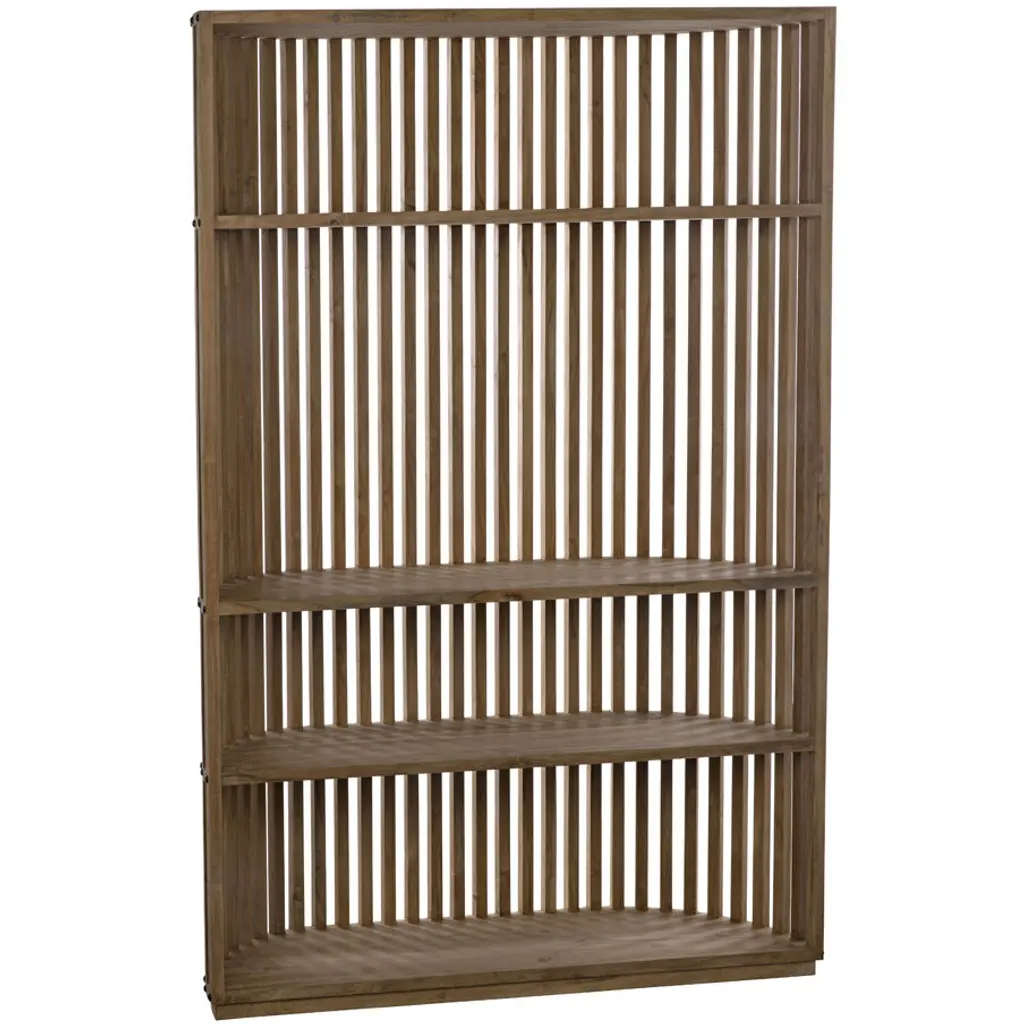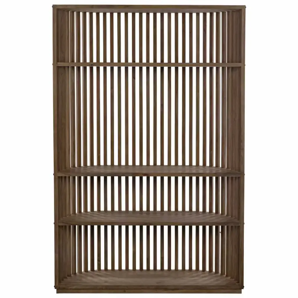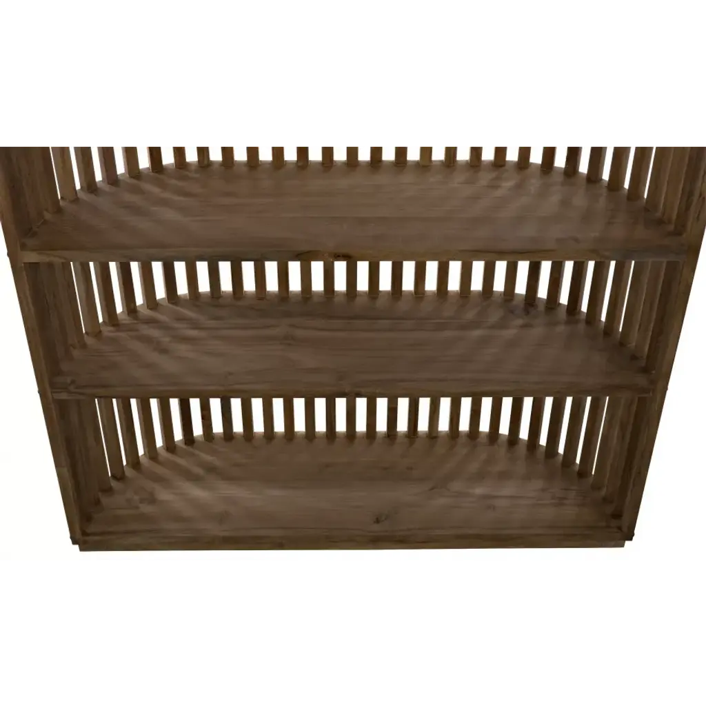 A gently curved shape is complemented by perfectly straight lines in this hand-carved shelving unit. Fully finished, from the back you'll appreciate nailhead inspired accents, and from the front dramatic vertical lines demand attention. Handcrafted of teak.