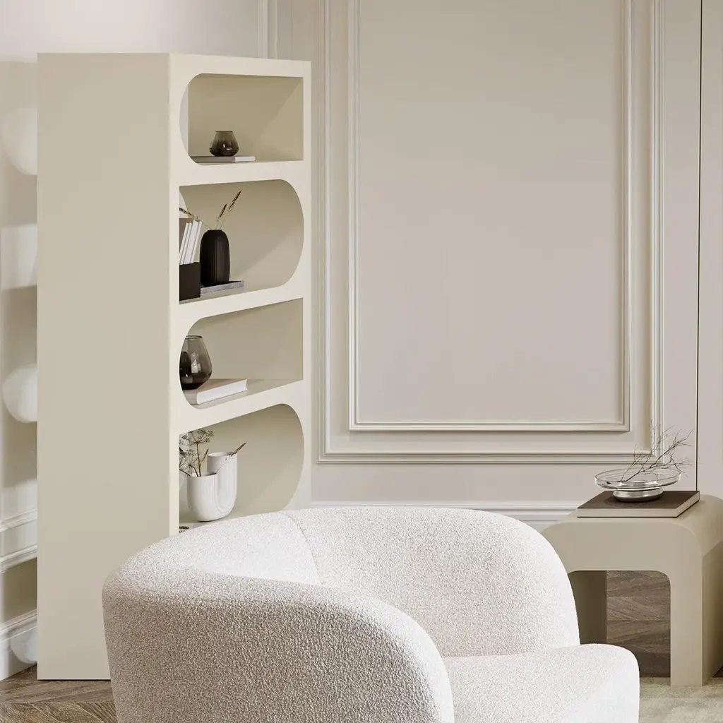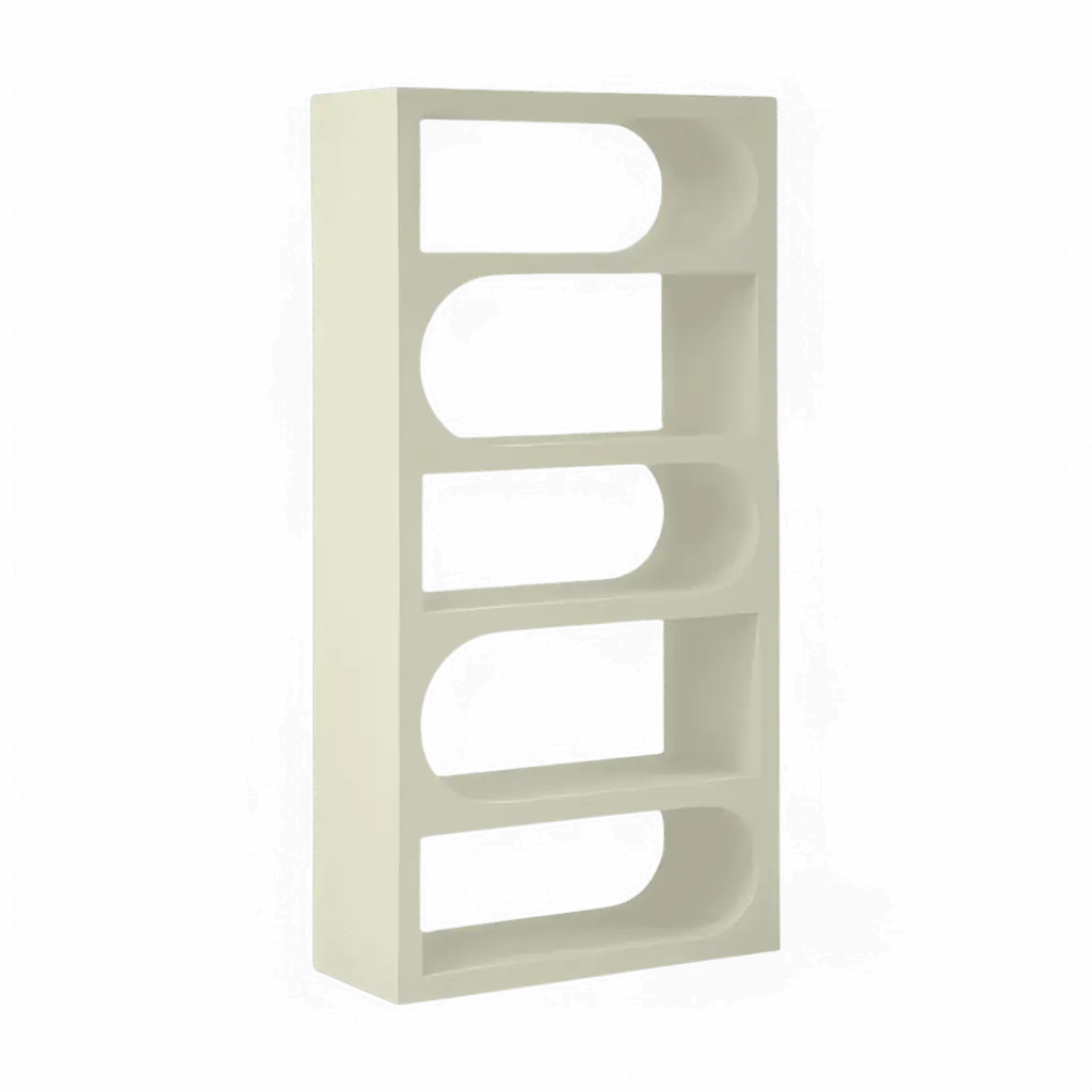 The Osna Shelves in Alabaster is a stunning and versatile shelving unit that combines practical functionality with elegant aesthetics. This five-tiered shelving system is characterized by its unique and eye-catching alternating side arch design. Add a touch of elegance to your space with the Osna Shelves and transform your living areas into a visual masterpiece.Alabaster Matte Lacquered Engineered Wood | Weight Capacity: 17.6 lbs