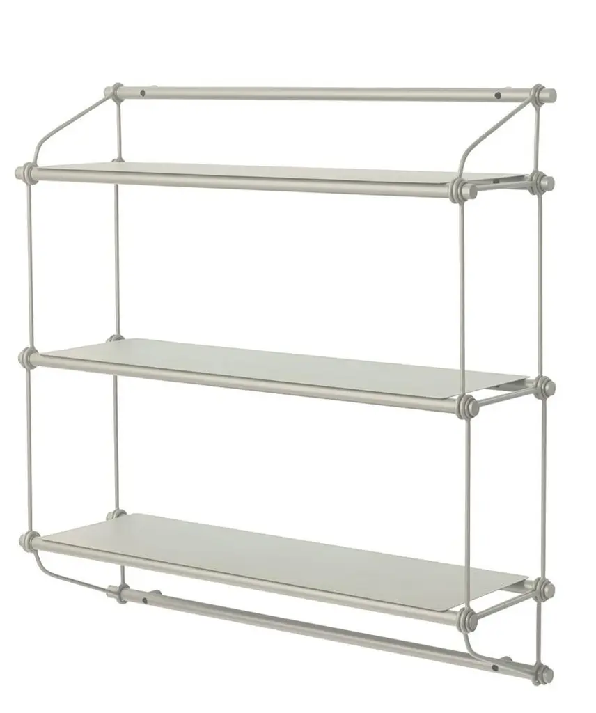 Parade 3 shelves Green Olive by Warm NordicDimensions: D100 x W30 x H104 cmMaterial: Powder coated steelWeight: 12 kgAlso available in different colours and dimensions. Elegant metal shelving unit with plenty of space for all your favourite possessions. Parade is perfect for putting your belongings on display with the shelving unit serving as a beautiful frame. It comes either as a complete shelving unit or as an extended version with extra shelves, inspired by 1960s-style wooden shelves or luggage racks on trains, with the same lightweight idiom and functionality. This means that Parade can be used in an infinite number of ways: from the stylish storage of teapot, cups and plates in the kitchen to the display of books, pretty vases and green plants in the living room, or as an elegantly lightweight hat rack in the hallway. With the choice of colour you can either tone down the look or allow the Parade shelving unit to play a major role in your interior. The shelving comes either as a complete shelving unit with three shelves or as individual shelves. The shelves can be combined with an extension to extend your Parade.Warm Nordic is an ambitious design brand anchored in Nordic design history and with a timeless, aesthetic style that inspires you to appreciate the little things in life. The company is the result of several years’ intense work on developing a new design brand with design history, quality and personality at its core. Warm Nordic boasts a colourful and charming universe of furniture, lamps and accessories full of personality. Our designs encapsulate the Nordic spirit, which in its essence is timeless, inclusive and warm.