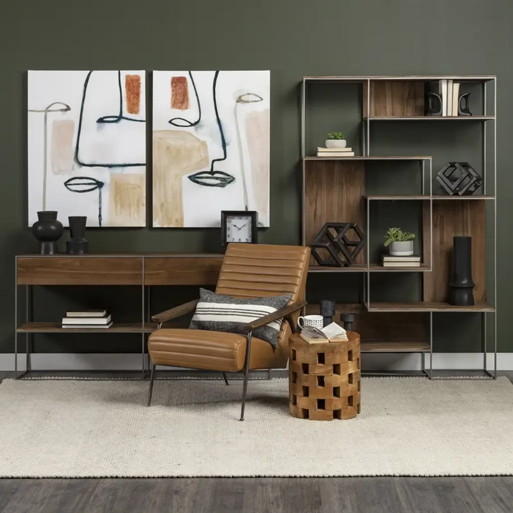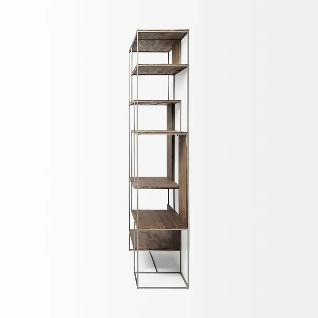 Composed of premium wood and metal components, the product is a stylish modular shelving unit that offers unparalleled functionality and makes for a great addition to any room in your contemporary home. It flaunts a silver-toned, metal frame that hosts a multitude of shelves. Premium finish and sturdy construction feature a metal chassis complemented by wooden shelves that are finished in a natural medium brown palette with silver-toned accents. The assortment of storage features a multitude of shelves of different sizes and shapes for all your favorite items and accessories. Modern-inspired design is designed to suit modern spaces and thus flaunts clean lines and a sleek silhouette that complements its sturdy construction and neutral color palette. This product follows an easy assembly process which means that it is ready to be a head-turner in your space, shortly after it arrives.