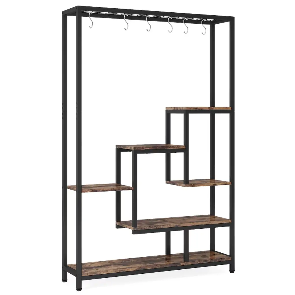 Resenkos Plant Stand,flower Pot Holder Shelf Planter Display Shelving Unit,70.9" Plant Stand, Large Flower Bonsai Shelf With 6 S Hanging Hooks,rustic