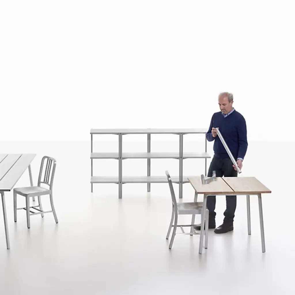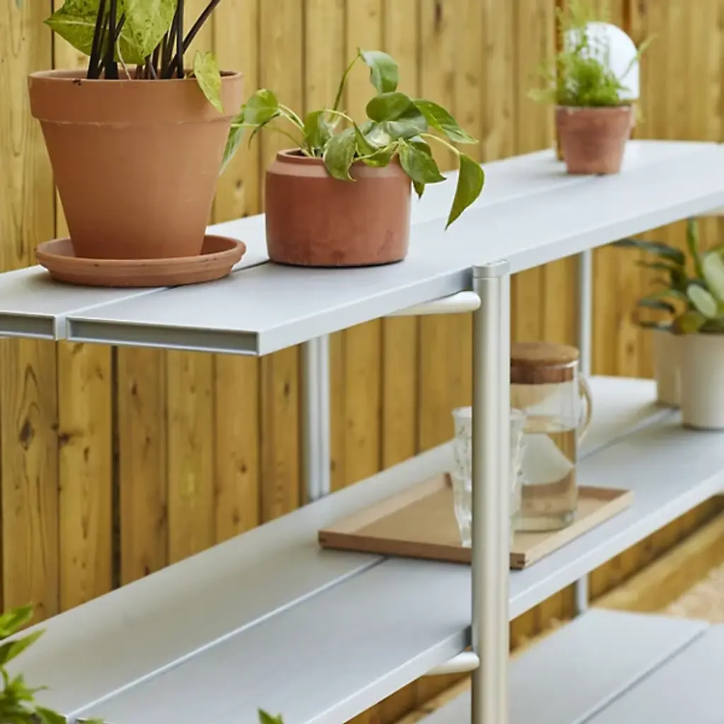 Keep it simple with a Run Shelf - Clear Anodized Frame by Emeco. Part of a collection by Sam Hecht and Kim Colin, it features clean lines to blend seamlessly with contemporary interiors. It has three shelves perfect for displaying or storing everything from books, to plants to ceramics. A sleek design constructed of sustainable materials, this shelving unit offers lasting quality and timeless style.