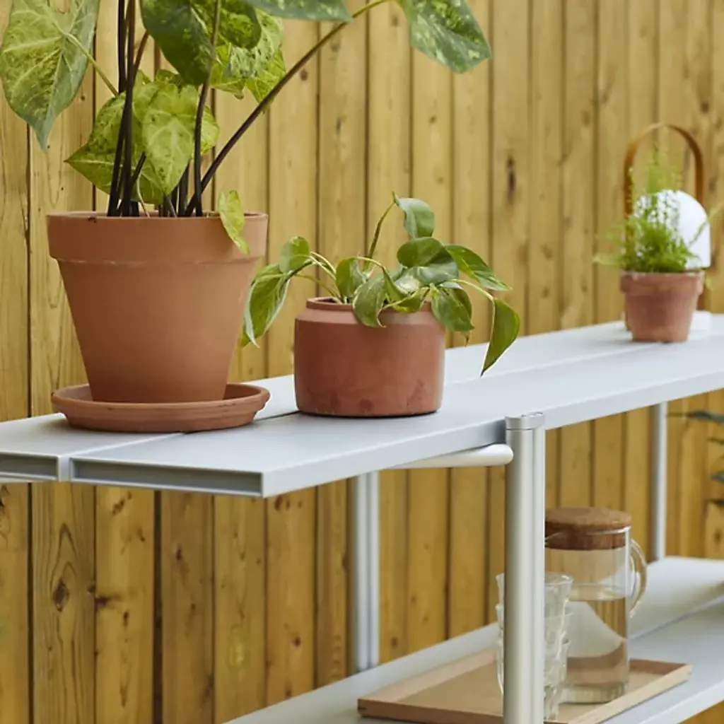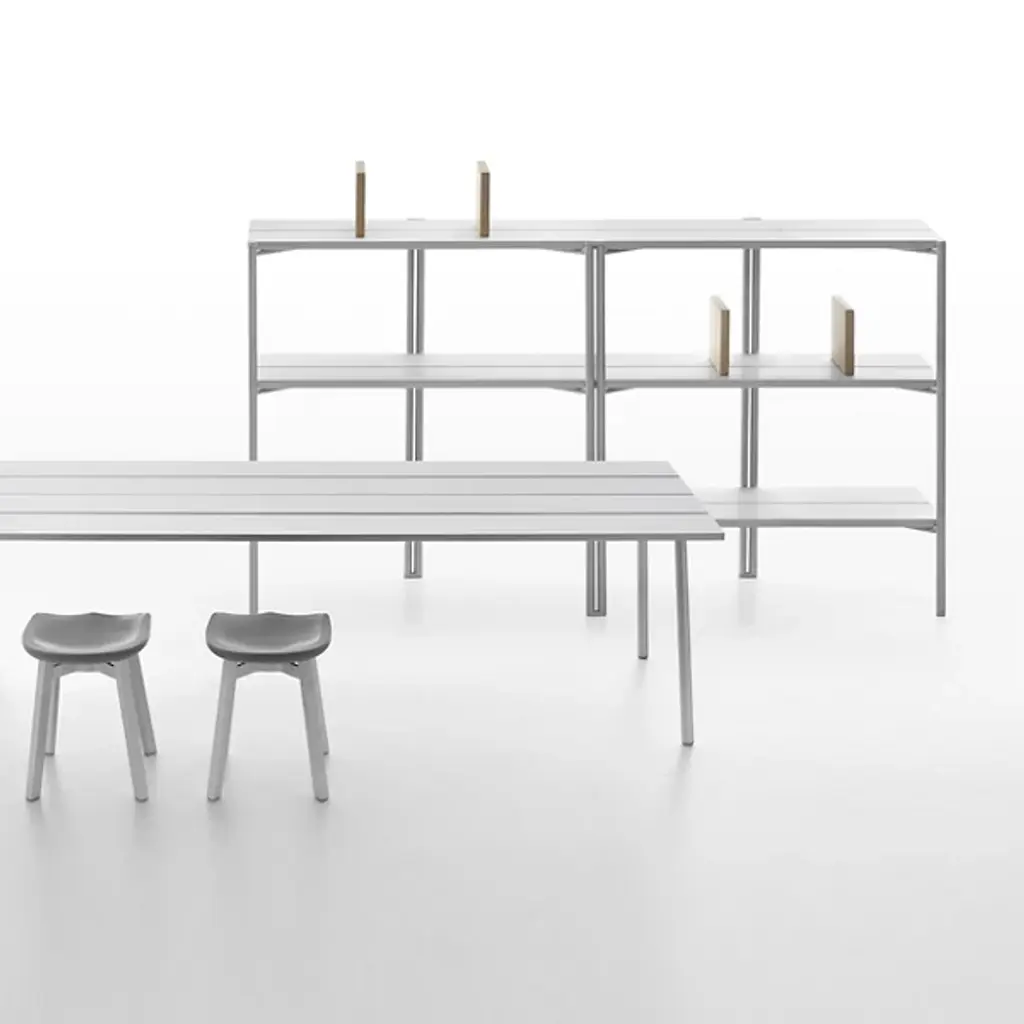 Keep it simple with a Run Shelf - Clear Anodized Frame by Emeco. Part of a collection by Sam Hecht and Kim Colin, it features clean lines to blend seamlessly with contemporary interiors. It has three shelves perfect for displaying or storing everything from books, to plants to ceramics. A sleek design constructed of sustainable materials, this shelving unit offers lasting quality and timeless style.
