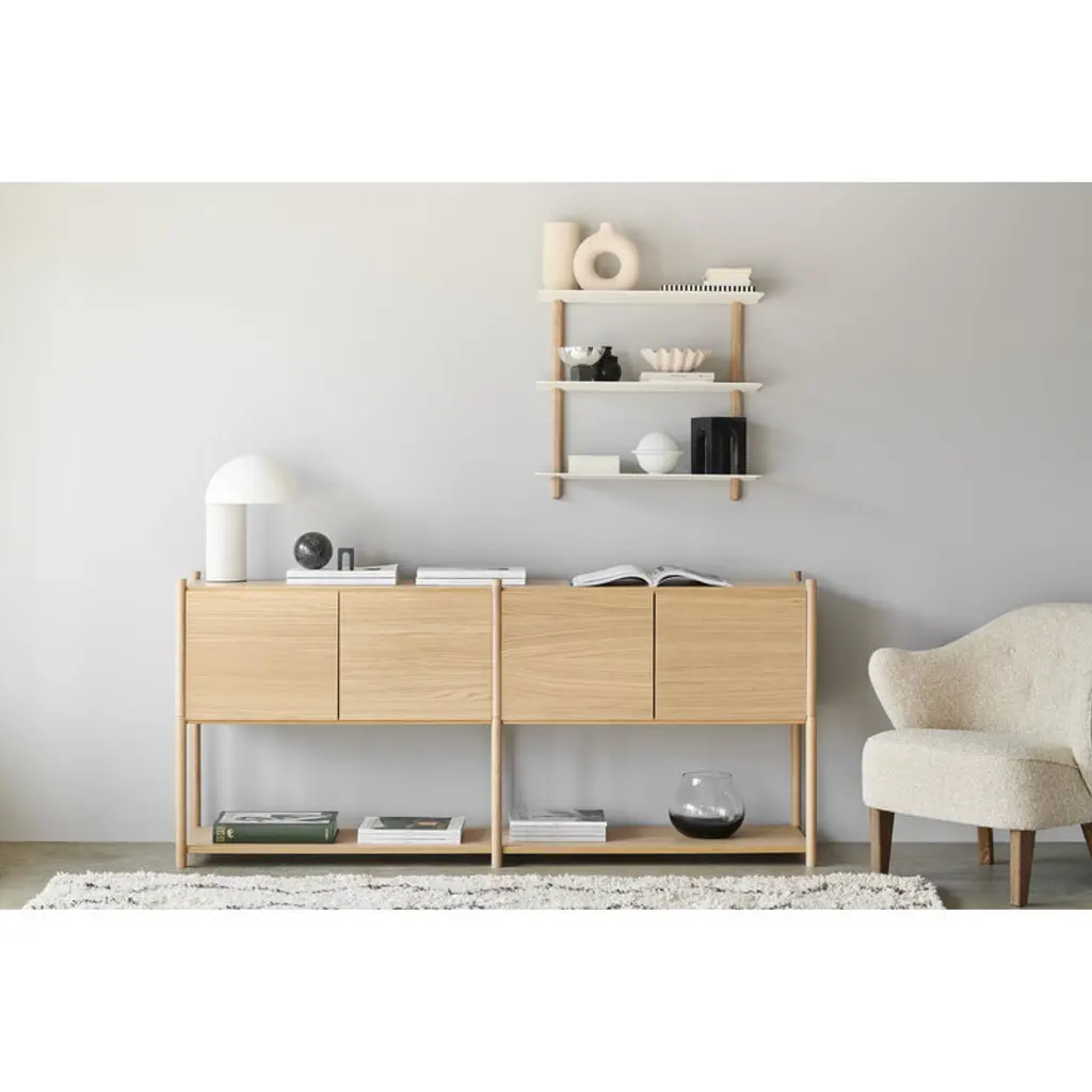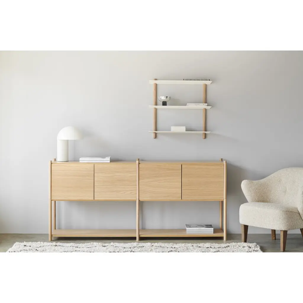 Gejst’s Sceene, designed by Michael Rem, is a beautifully crafted oak storage system that balances functionality with elegant esthetics. Thanks to its modular design, Sceene can easily be expanded and tailored to suit your needs: add side panels, doors, or back panels to create a harmonious, polished look for any space and style. This Sceene shelving unit combines open and closed storage, offering a stylish balance between display and concealment. The minimalist shape and natural materials lend an airy yet robust presence, making the Sceene bookcase a perfect addition to both a cozy living room and a sleek home office.