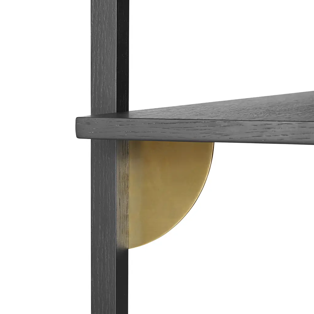 Meet the shelving system that will not only showcase items with elegance, but will also make your home look more stylish. Part of the Ferm Living collection, the Sector Triple Wide shelves give a contemporary nod to mid-century modern shelving units. In this version, the ash wood supports and shelves boast a black finish that makes the golden color of the brass hardware stand out. Great for rooms like lounge areas, bedroom, kitchens, or home offices, the three shelves offer plenty of room for a variety of items. The included wall plugs suit brick and concrete walls only. This design also comes in a narrow version.