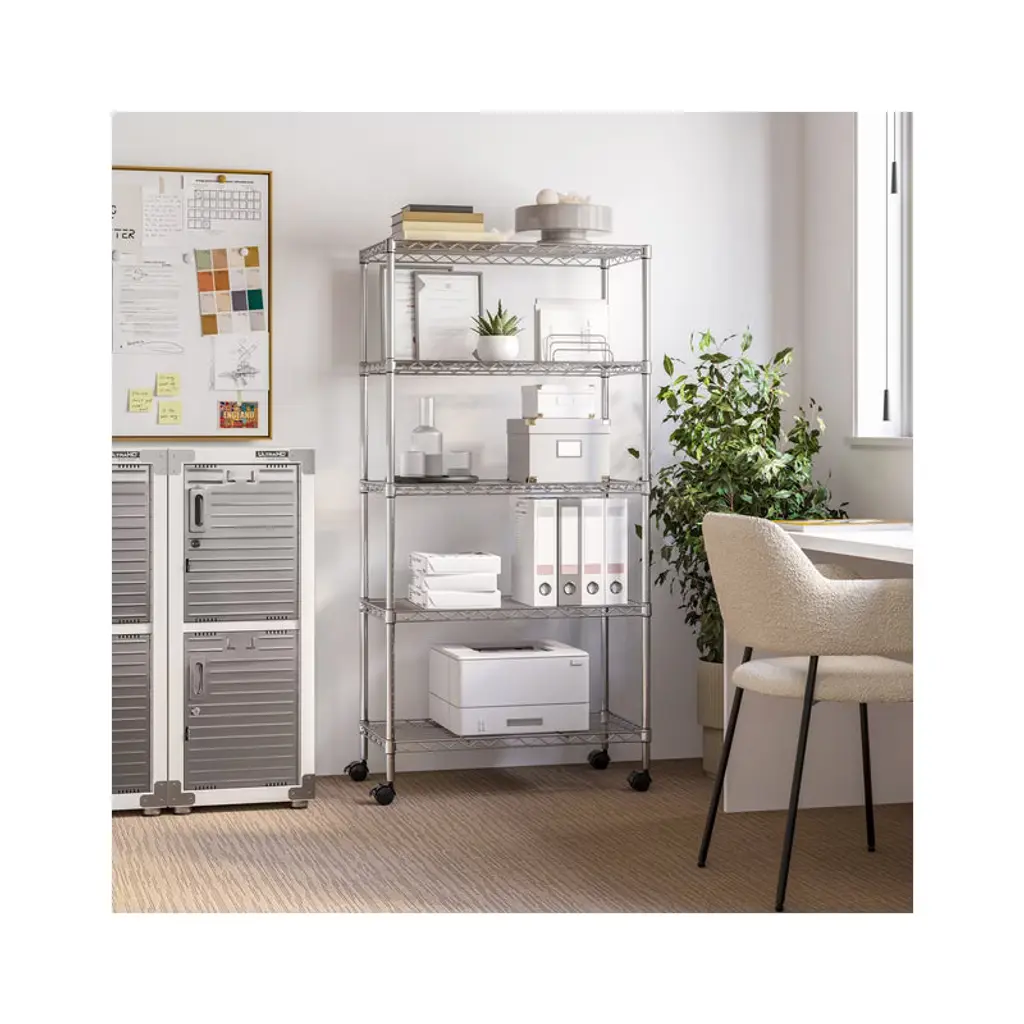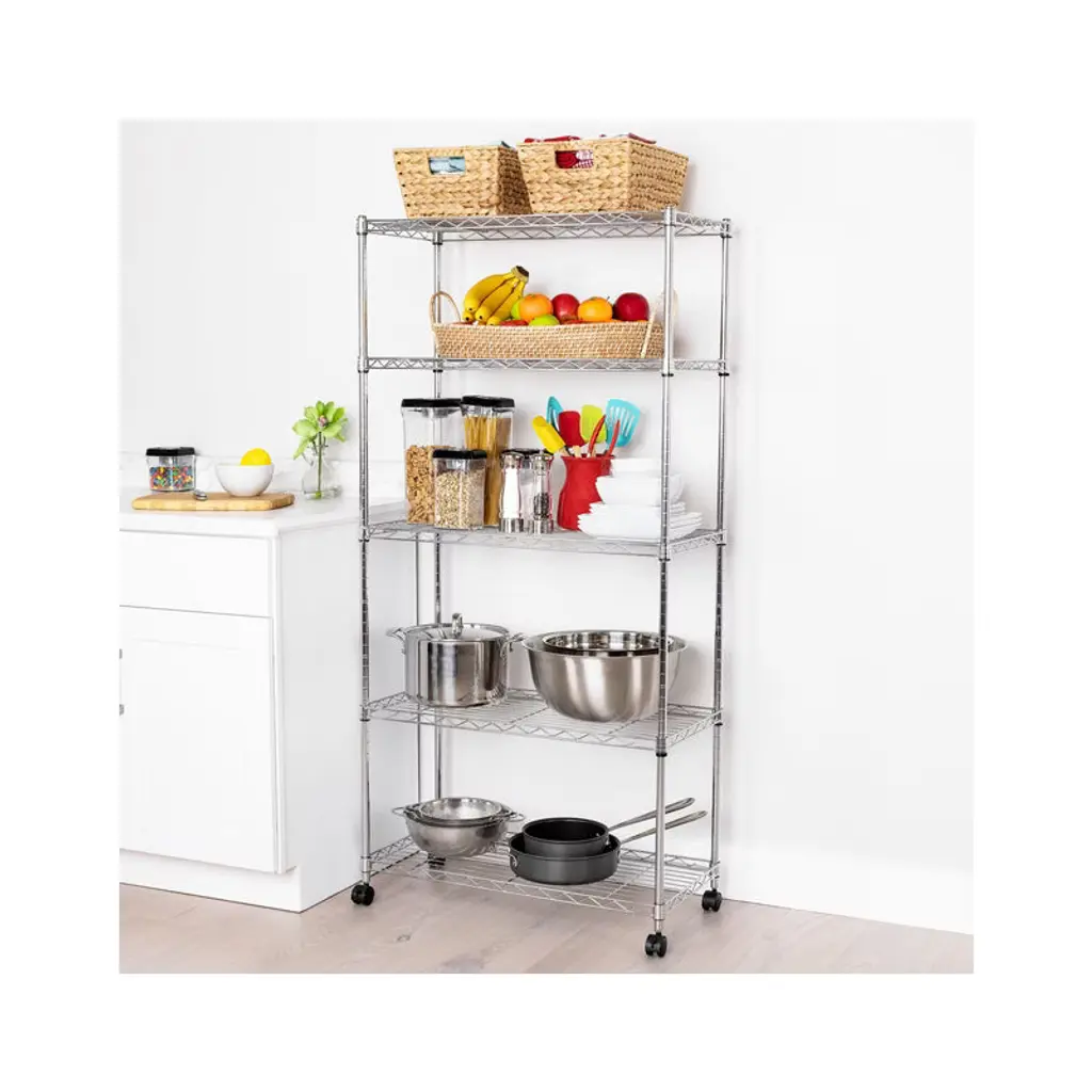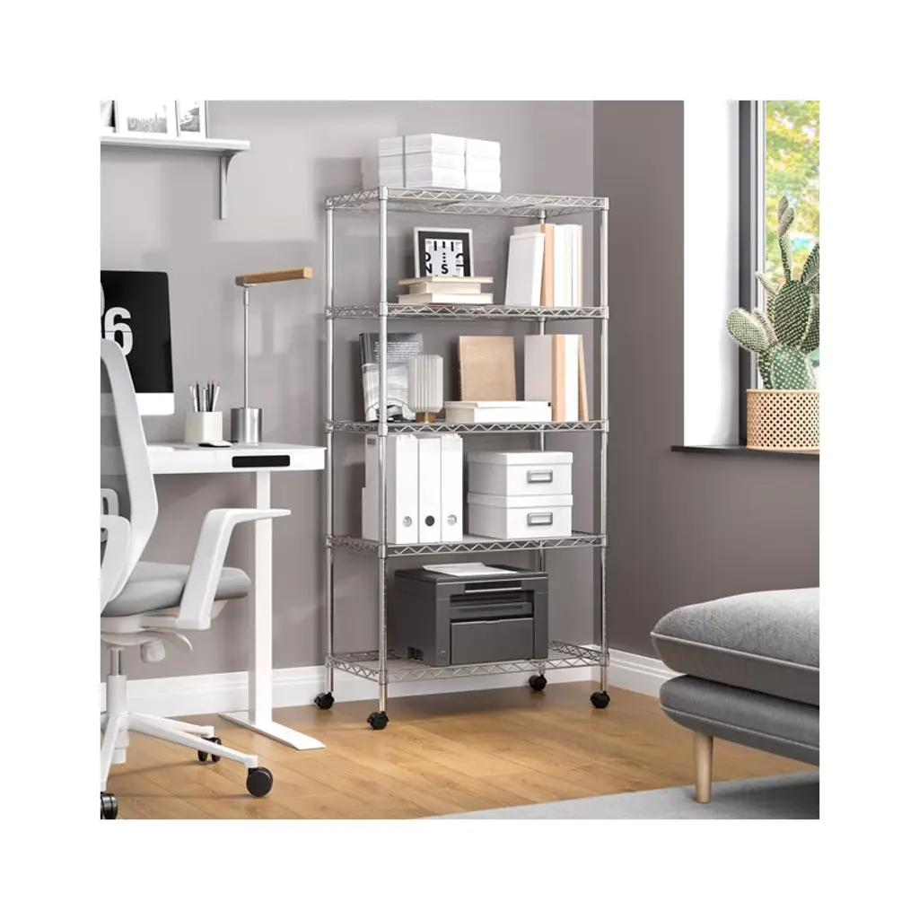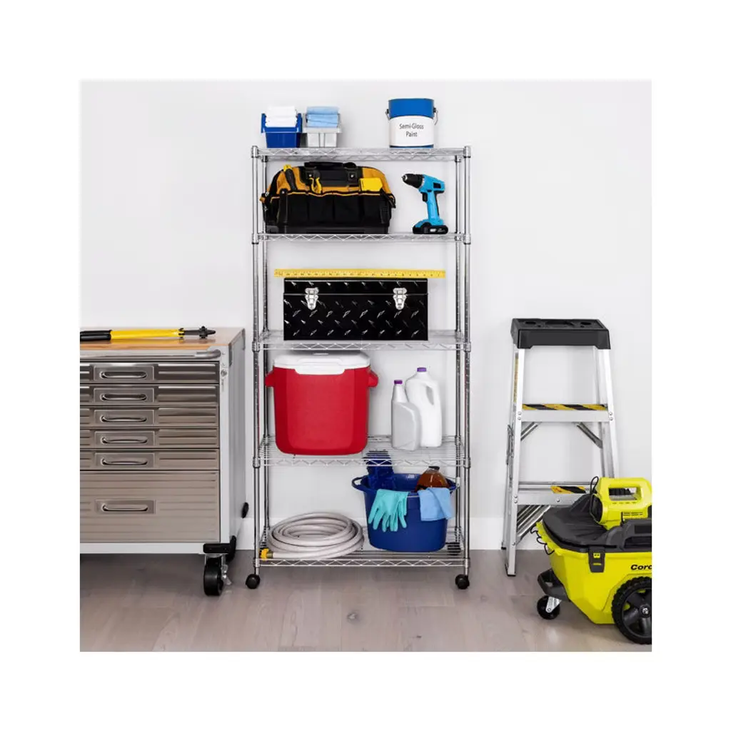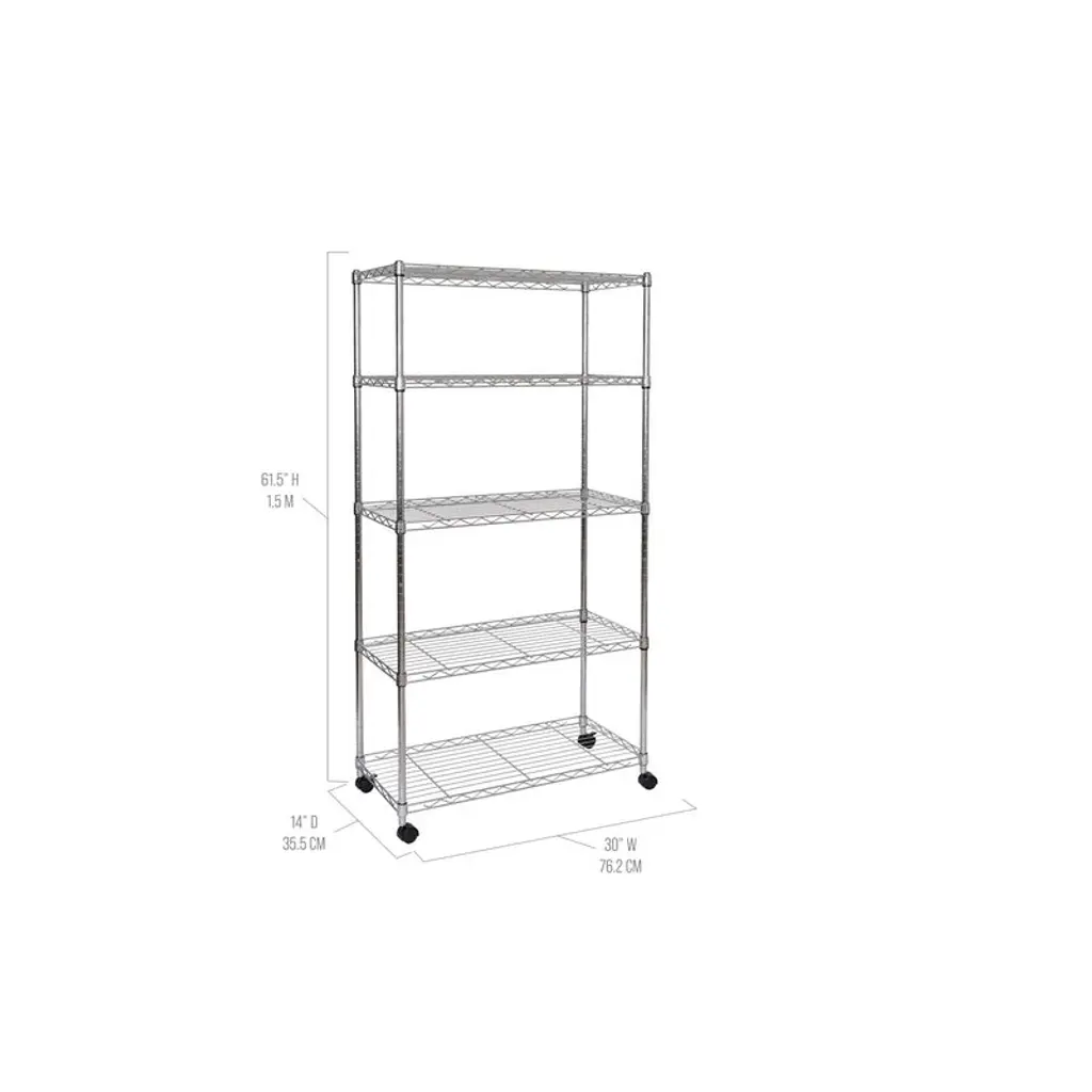 Maximize your storage with the Seville Classics 5-tier Steel Shelving System. This shelving rack measures 30" W x 14" D x 61.5" H on casters (60" H on leveling feet) and is constructed from commercial-grade steel. The 5 steel wire shelves are adjustable at 1" increment and can hold up to 300 lb. per shelf (on leveling feet). The entire shelving system can hold up to 1,500 lb. (on leveling feet). The mobile design features 1.5" caster wheels and includes bonus adjustable leveling feet. This shelving is ideal for use in homes, offices, schools, mailrooms, classrooms, and businesses.