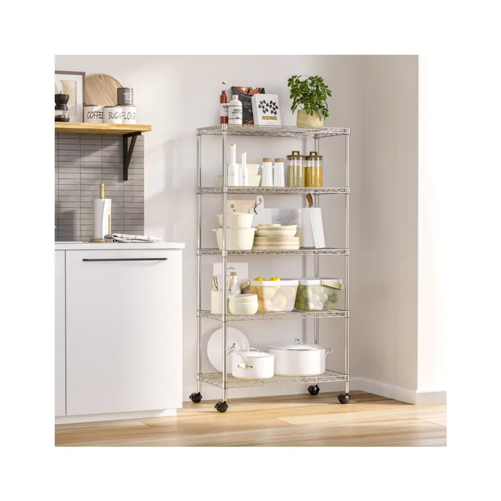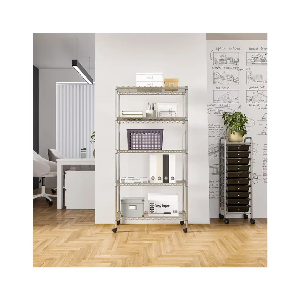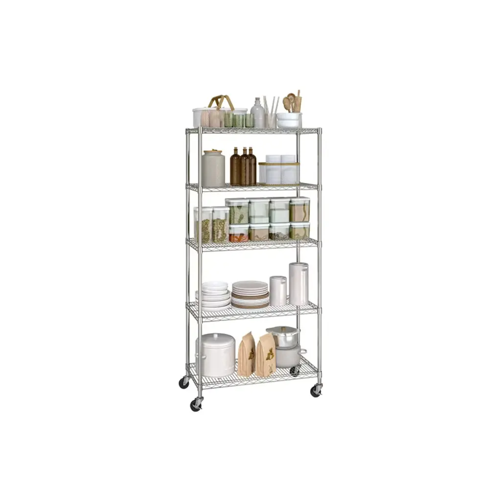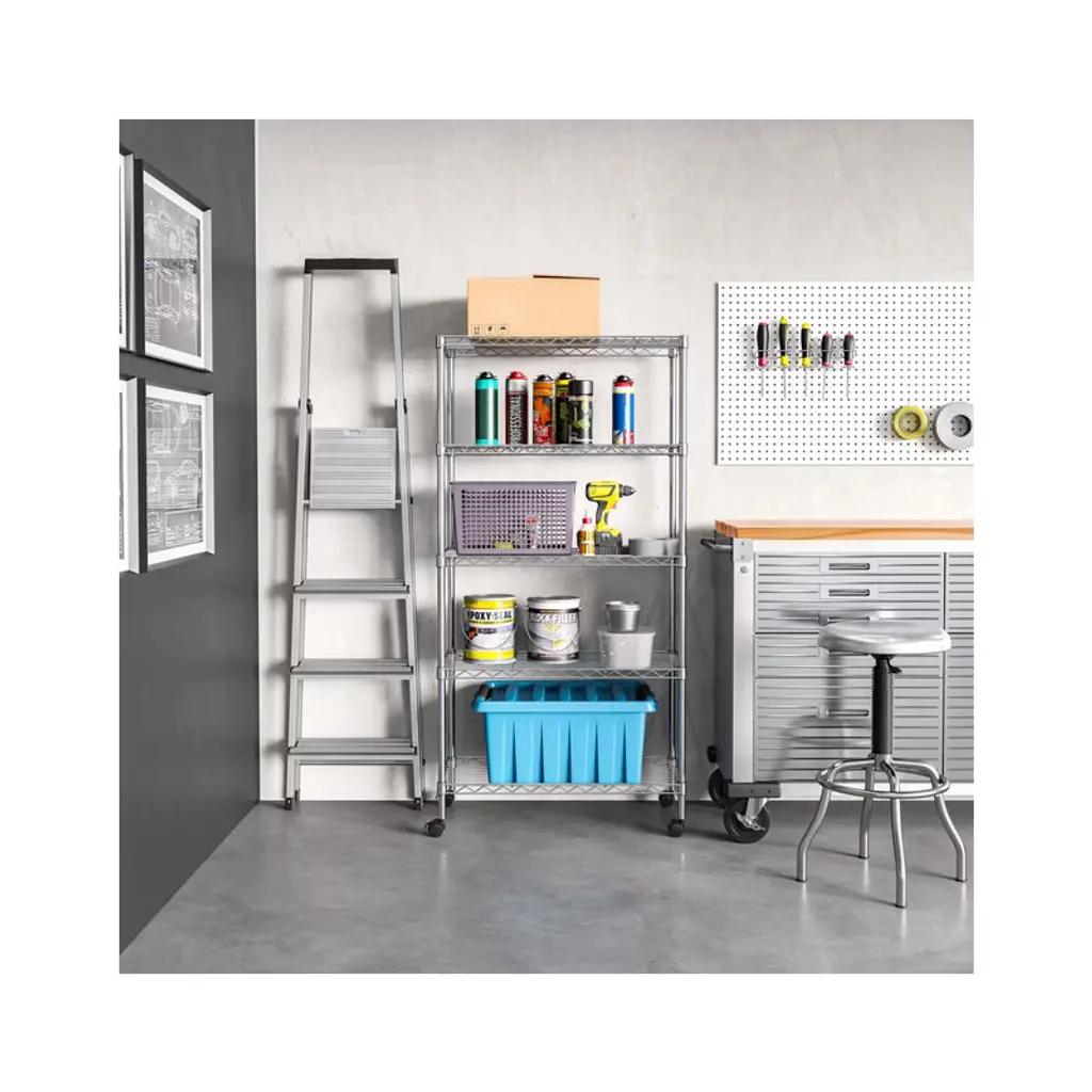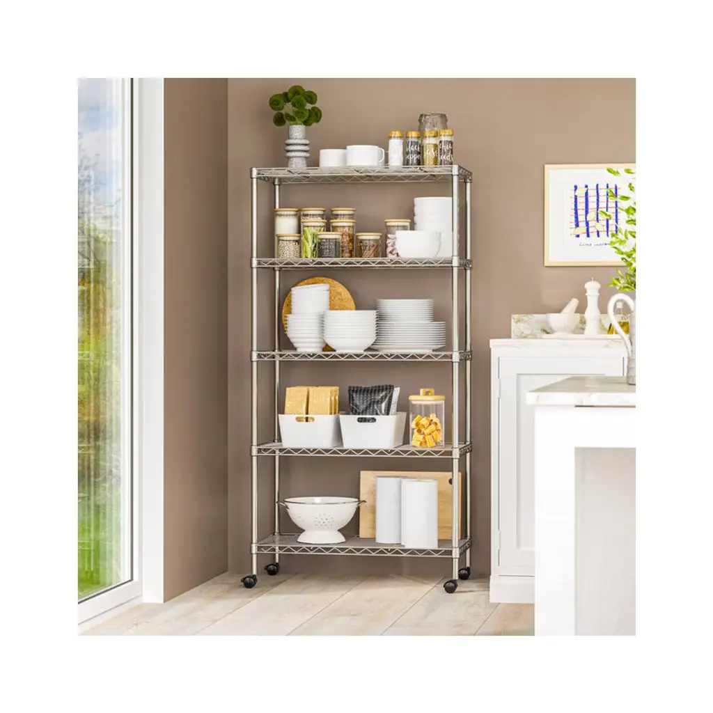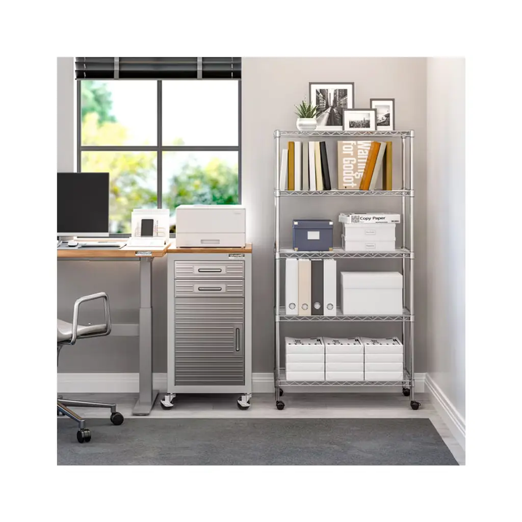 Maximize your storage with the Seville Classics 5-tier Steel Shelving System. This shelving rack measures 30" W x 14" D x 61.5" H on casters (60" H on leveling feet) and is constructed from commercial-grade steel. The 5 steel wire shelves are adjustable at 1" increment and can hold up to 300 lb. per shelf (on leveling feet). The entire shelving system can hold up to 1,500 lb. (on leveling feet). The mobile design features 1.5" caster wheels and includes bonus adjustable leveling feet. This shelving is ideal for use in homes, offices, schools, mailrooms, classrooms, and businesses.