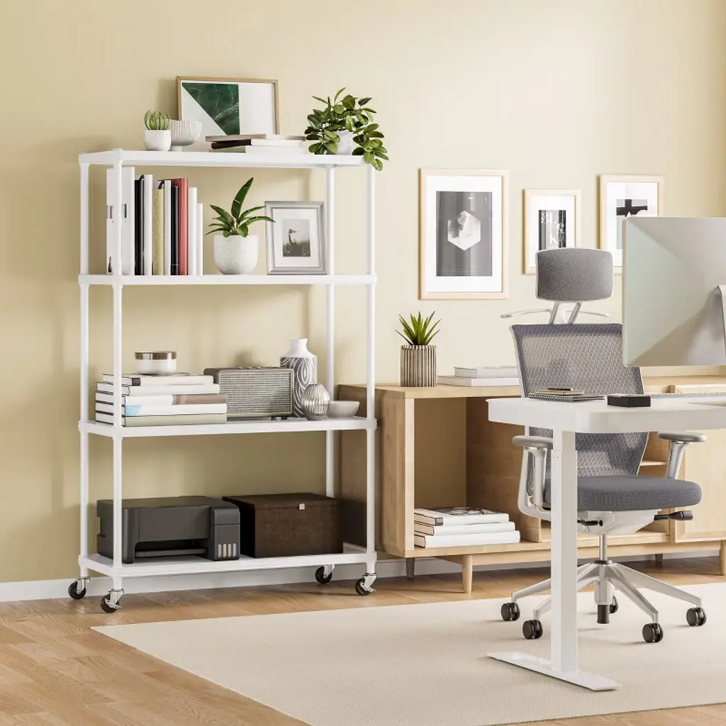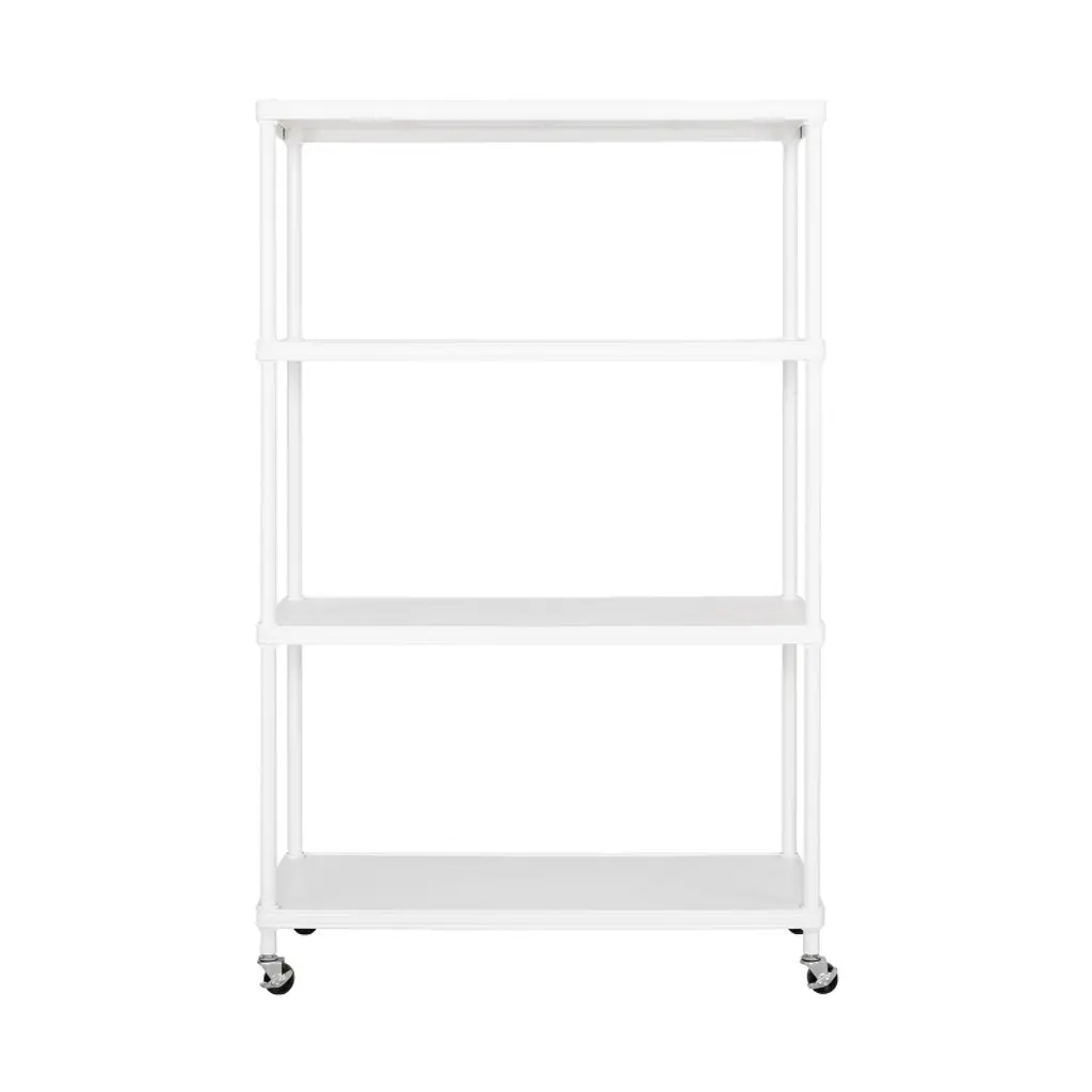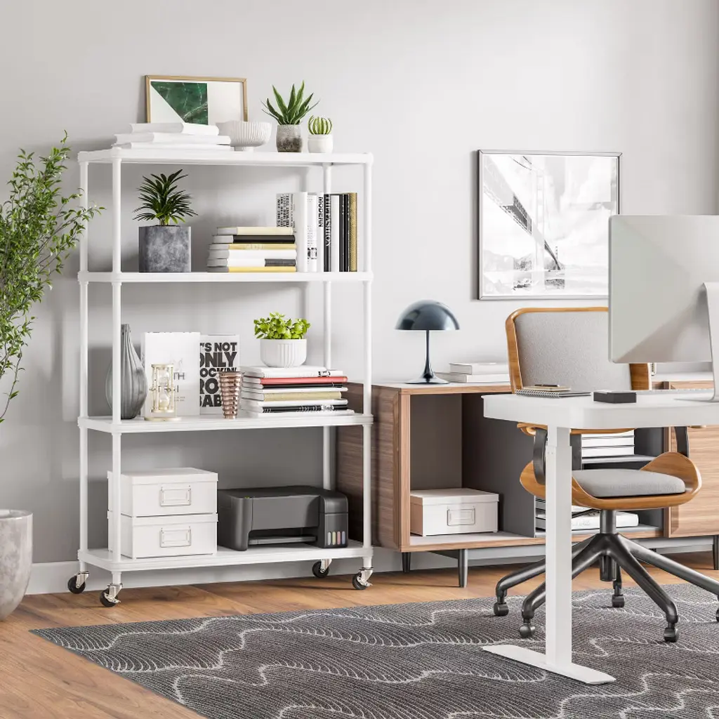 The Seville Classics 4-Tier Steel Shelving unit blends strength, flexibility, and mobility into a sleek storage solution. Its commercial-grade steel frame supports up to 300 lb per shelf (1,200 lb total on leveling feet, or 330 lb total on wheels), while four adjustable wire shelveseach spaced in 3" incrementslet you tailor it to your needs. Included shelf liners provide a stable surface for small items, and the unit is easy to assemble (no tools needed). It rolls smoothly on four wheels (two locking) and also includes leveling feet for stable use on uneven floors. Measuring 36" W 14" D 56.5" H, it comes in multiple finishes (Platinum, Black, White, Rich Brown) to suit your space.
