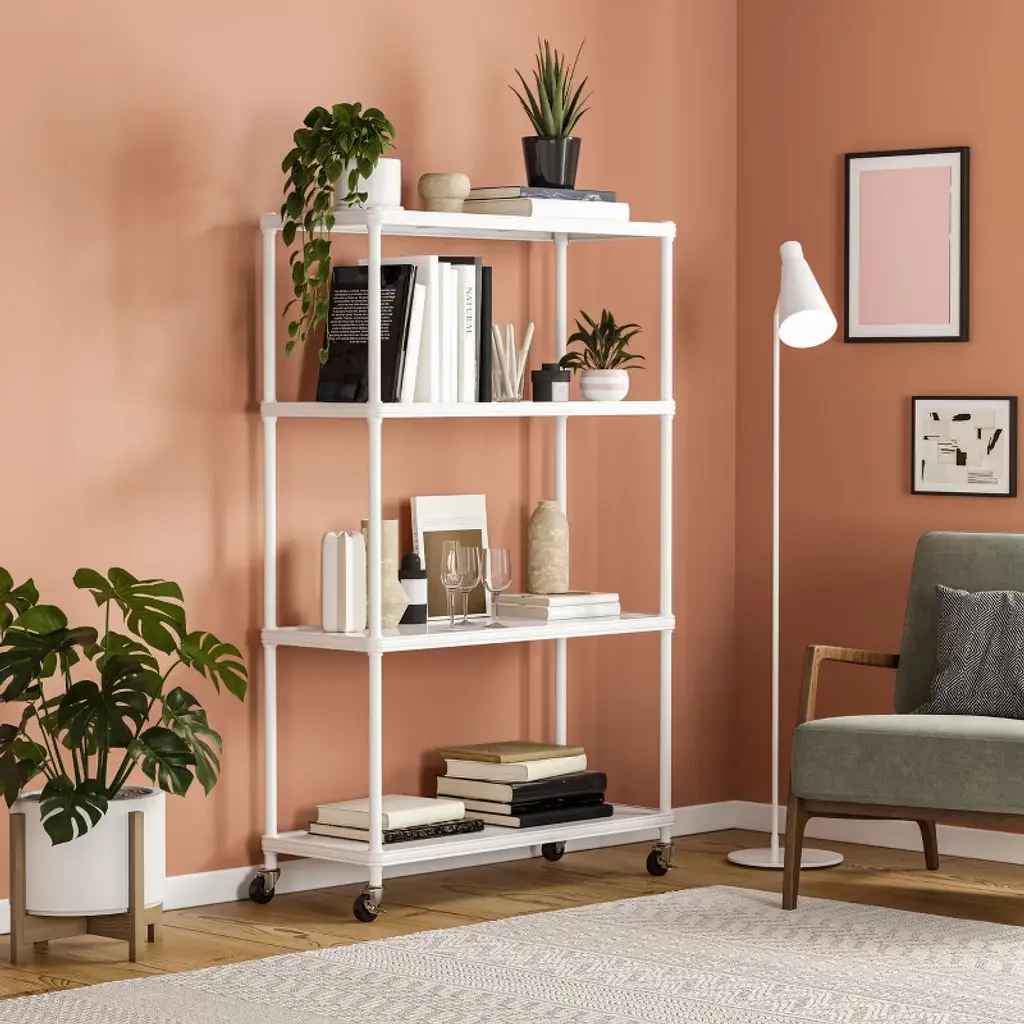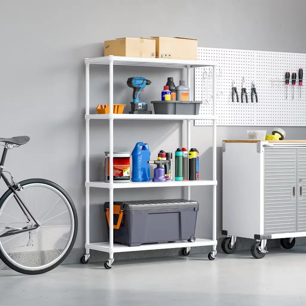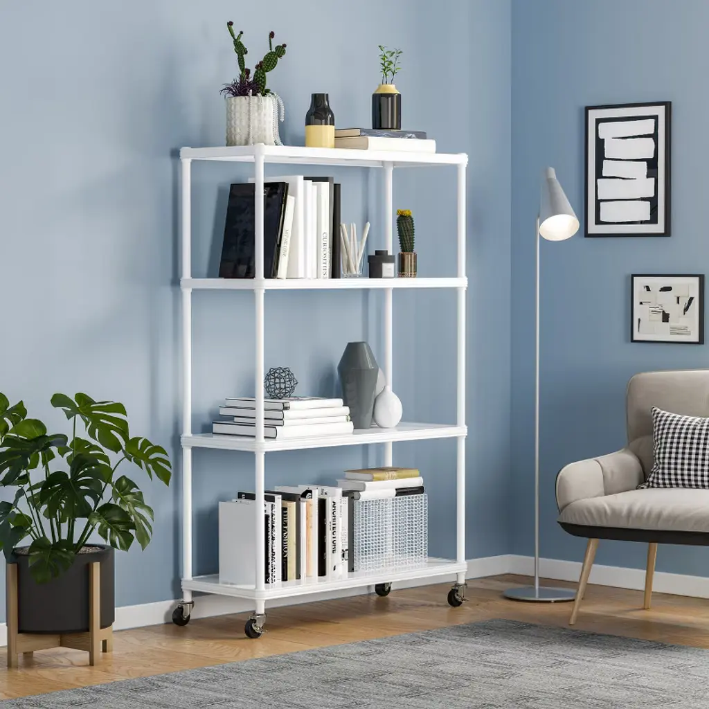The Seville Classics 4-Tier Steel Shelving unit blends strength, flexibility, and mobility into a sleek storage solution. Its commercial-grade steel frame supports up to 300 lb per shelf (1,200 lb total on leveling feet, or 330 lb total on wheels), while four adjustable wire shelveseach spaced in 3" incrementslet you tailor it to your needs. Included shelf liners provide a stable surface for small items, and the unit is easy to assemble (no tools needed). It rolls smoothly on four wheels (two locking) and also includes leveling feet for stable use on uneven floors. Measuring 36" W 14" D 56.5" H, it comes in multiple finishes (Platinum, Black, White, Rich Brown) to suit your space.