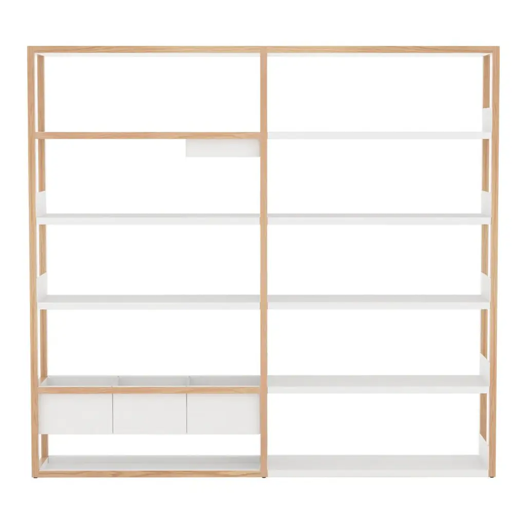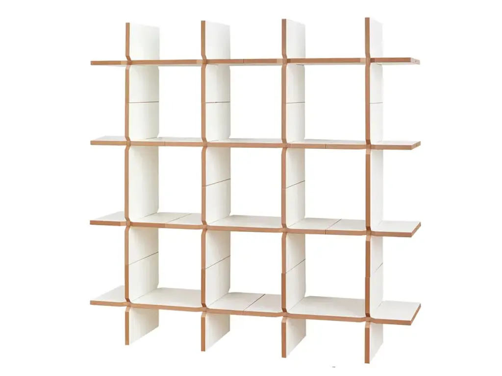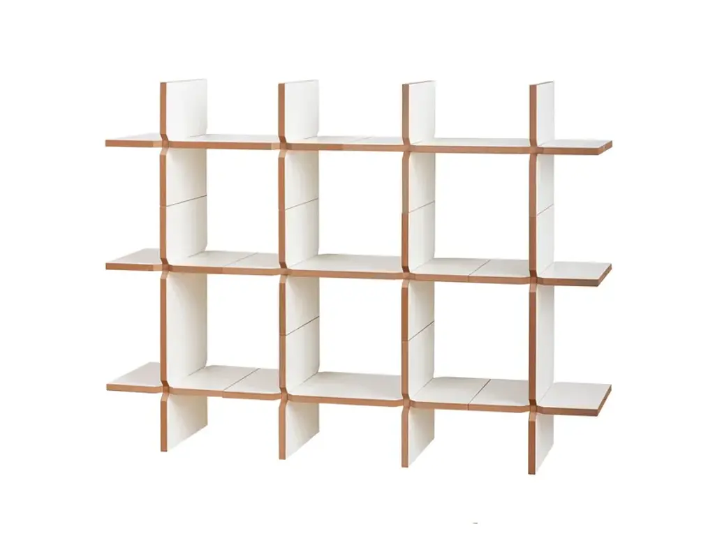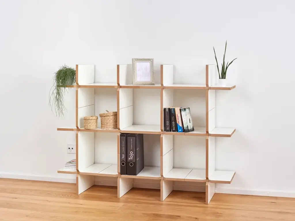 Tojo SOLO is a building block (w: 70 cm, h: 35 cm) from which different sizes of an individual shelf can be assembled as desired. Without tools, solid structures are created in different heights and widths. The elements are simply inserted horizontally and vertically, creating a stable unit. The combination options of Tojo SOLO are determined by the number of blocks and are expandable if necessary.
