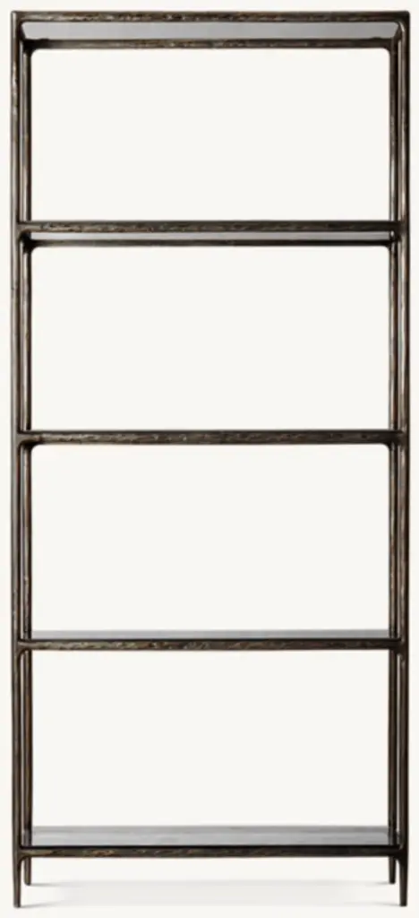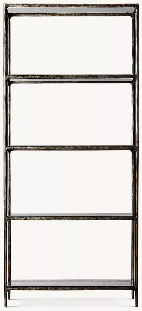 Inspired by the sculptural works of Salvador Dalí and Diego Giacometti, our collection by Julie Lawrence merges the rustic sensibility of a hand-forged solid brass or solid stainless steel base with clear glass shelves. Employing an ancient fabrication process, artisans hand hammer the metal bars to reveal an alive, imperfect and organic texture, a counterpoint to the frame's slender, tapered silhouette.SHOP THE ENTIRE COLLECTION