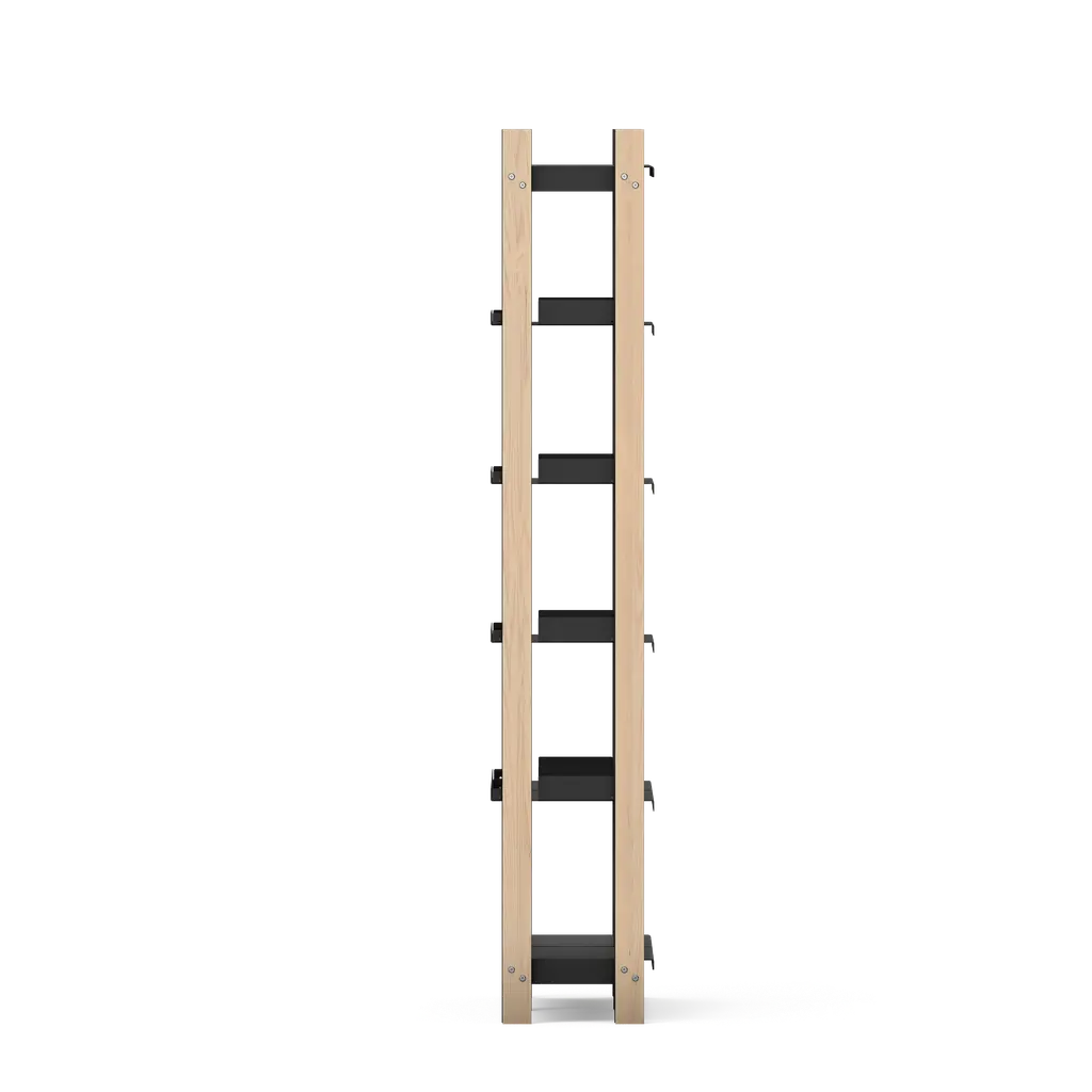 A modular shelving system, designed and perfected over three years. The eye-catching contrast of powder coated steel shelves and ash supports makes the Tall Shelf the perfect place to express yourself with the things you love. The Triple Tall Shelf includes one Tall Shelf and two Tall Expansion Units.