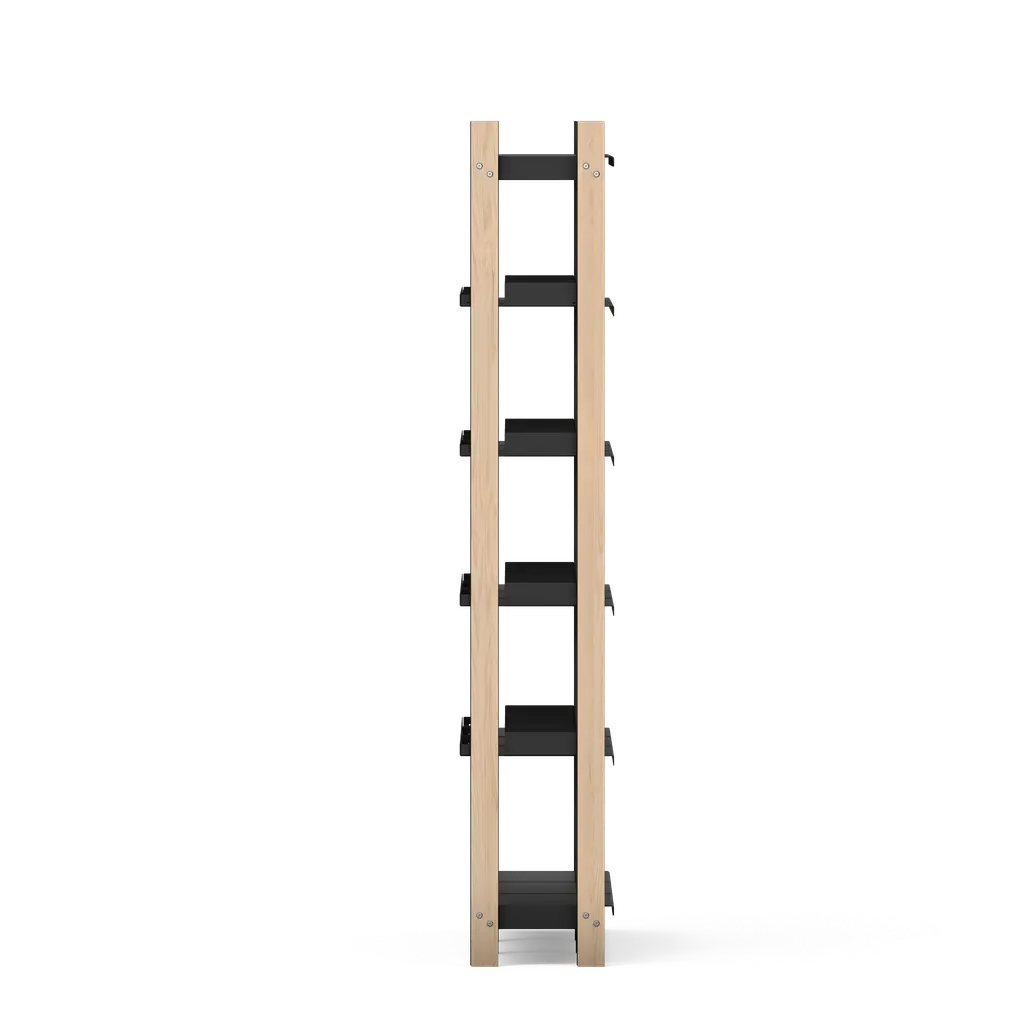 A modular shelving system, designed and perfected over three years. The eye-catching contrast of powder coated steel shelves and ash supports makes the Tall Shelf the perfect place to express yourself with the things you love. The Triple Tall Shelf includes one Tall Shelf and two Tall Expansion Units.