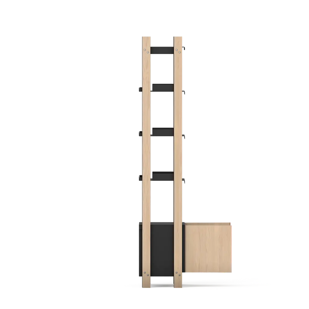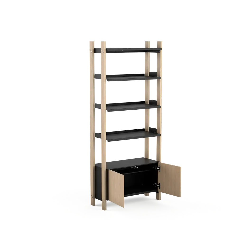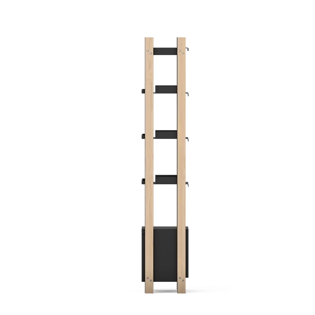 A modular shelving system, designed and perfected over three years. The eye-catching contrast of powder coated steel shelves and ash supports makes the Tall Shelf the perfect place to express yourself with the things you love. The Triple Tall Shelf includes one Tall Shelf and two Tall Expansion Units.