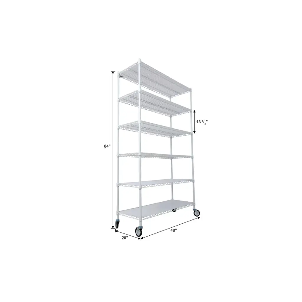 Heavy-Duty 6 Tier Shelving: Our wire shelving unit features 6 tiers with a large capacity, each shelf capable of holding 1000lbs, for a total maximum load capacity of 6000 lbs. The heavy-duty design ensures stability, with the bottom shelf recommended for heavier items. Additionally, the choice of beautiful and fun transparent colors for the 6 shelf liners allows you to add a pop of color to your space, and they are waterproof, ensuring they won¡¯t get damaged from exposure to moisture.Sturdy and Durable Construction: Crafted from heavy steel, our wire shelving unit offers excellent rust and oxidation resistance, ensuring long-lasting durability. The shelf liners are of superior quality, thicker than the competition, and the entire unit has passed NSF certification, guaranteeing safety and reliability. This storage rack is the perfect addition to any home or office space.Adjustable and Versatile: Each shelf is adjustable in 1-inch increments, allowing you to customize the shelf height to accommodate items of various sizes. The top pole can be split to create two new shelves, providing flexibility for multiple uses based on your specific needs.Easy to Move: Our 6 tier garage shelves are designed with 4 leveling feet and 4 industrial wheels (2 lockable), allowing for easy movement and positioning in various spaces such as supermarkets, garages, closets, kitchens, and more. The height-adjustable leveling feet ensure stability even on uneven ground, and the non-slip design prevents scratching of floors.
