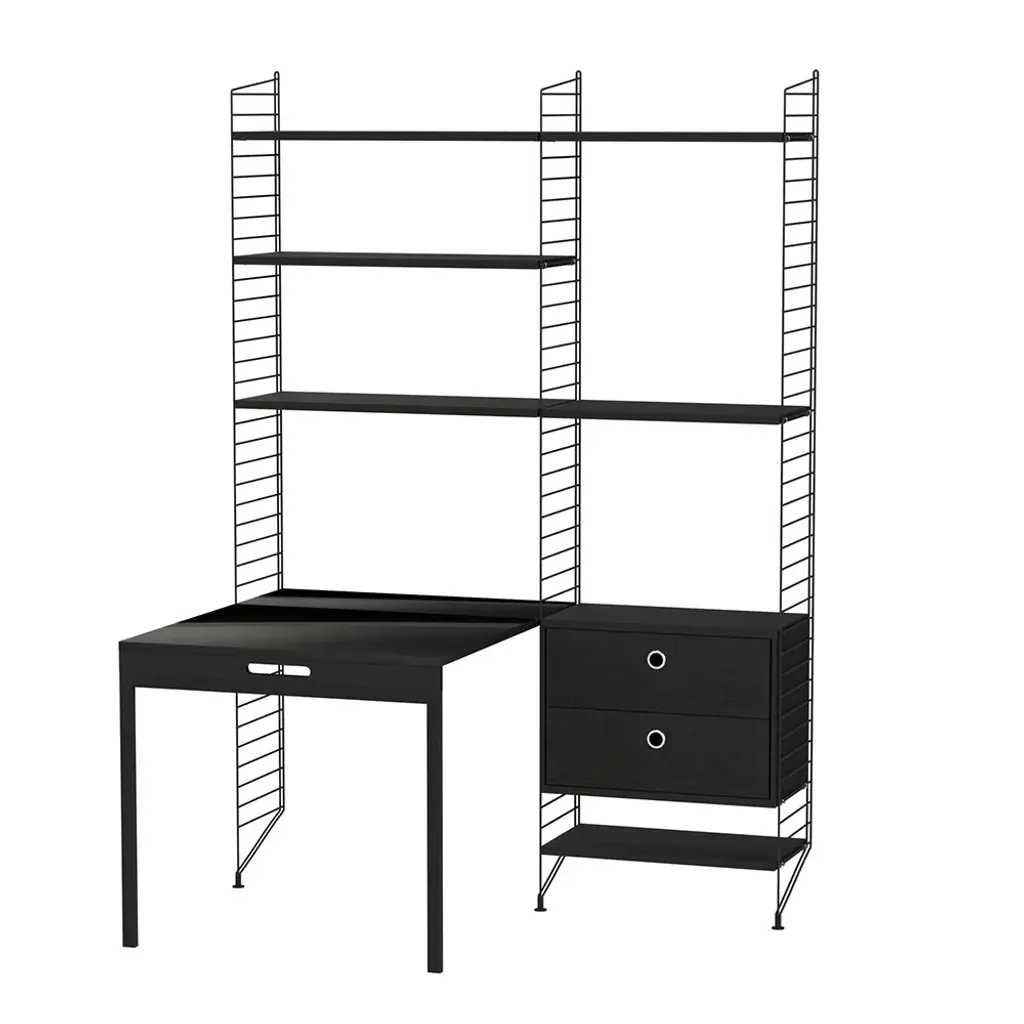 Tomado Single Section Teak Wall Mount Shelves With Black Wire Risers