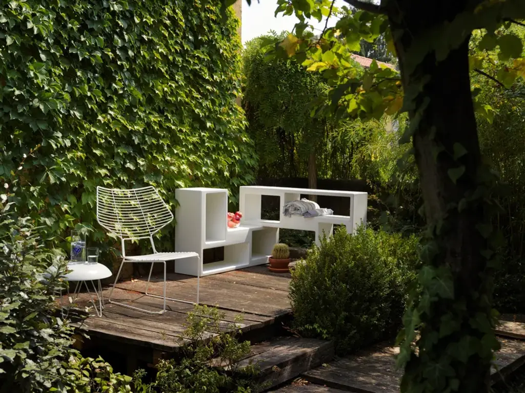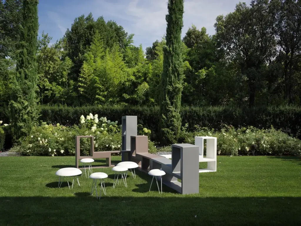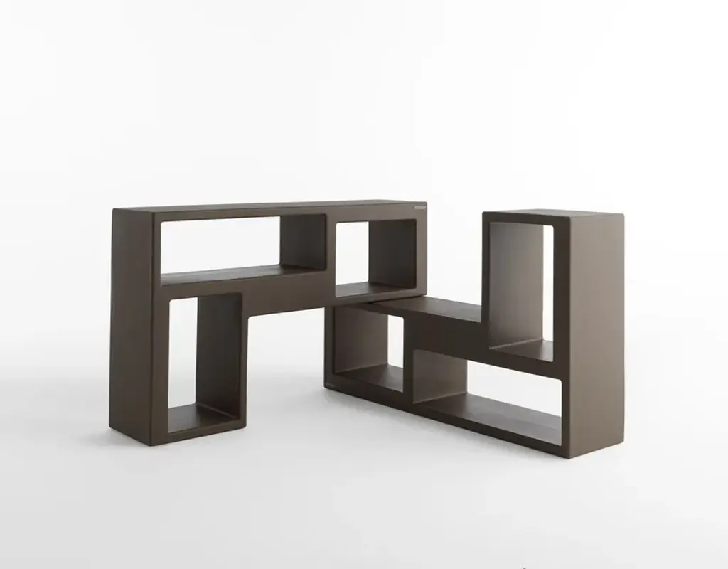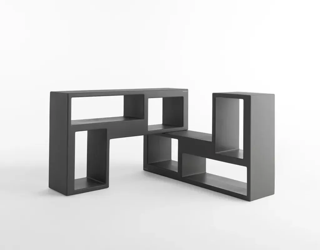 The ‘L’ shaped module measuring 140x 35cm can be used in any position. A system without hooks or joints which allows the user to create walls, screens, horizontal and vertical elements; angles, benches, entertainment systems – everything that comes to mind.The niches carved out of the piece underline the monolithic and solid nature of the Urban shelving unit. A modern piece which stands above the whims of fashion.The infinite possibilities of composition and the a vast choice of colours allow the user to create surprising landscapes and furnish her spaces in a dynamic and bright way. The apparent simplicity of the Urban shelving unit contrasts with the technical difficulties encountered in the rotational moulding of a plastic object with large flat surfaces. MATERIALS AND FINISHES Polyethylene. Carrying capacity: 200 Kg.