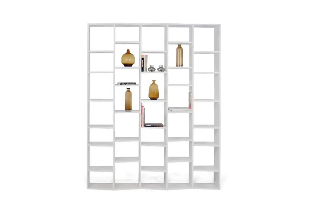 Like a dance Valsa's shapes guide you through the books of your life. It was inspired by the variety of sizes of objects and books, as this shelving unit breaks with the common rigidity of typical bookshelves. Valsa's wavy profile brings an exciting rhythm to any interior, while introducing an incredibly stylish piece.