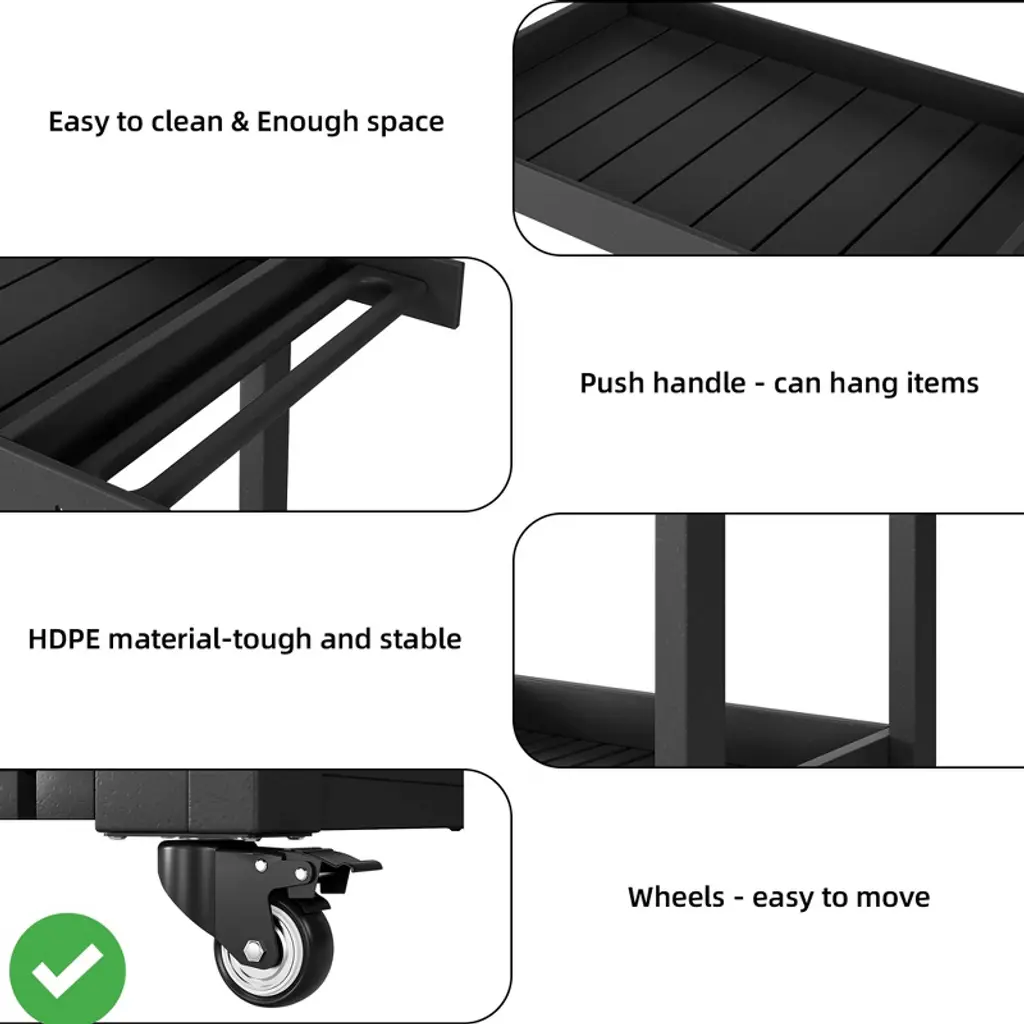 The HDPE material carts with wheels with wheels excels in diverse environments, encompassing households, offices, warehouses, and industrial facilities. Tool cart serves as a multifaceted cart, utility cart, transport cart, and shelving unit, augmenting unparalleled convenience to your daily endeavors.