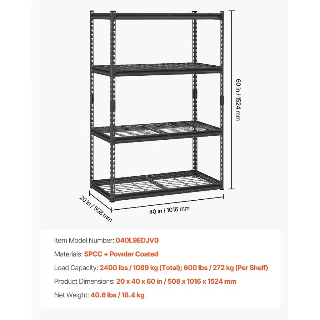 Vevor Storage Shelves, 2400 Lbs, 4 Tier Heavy Duty Garage Shelving, 20" D X 40" W X 60" H Adjustable Metal Shelves For Industrial Shelving Unit