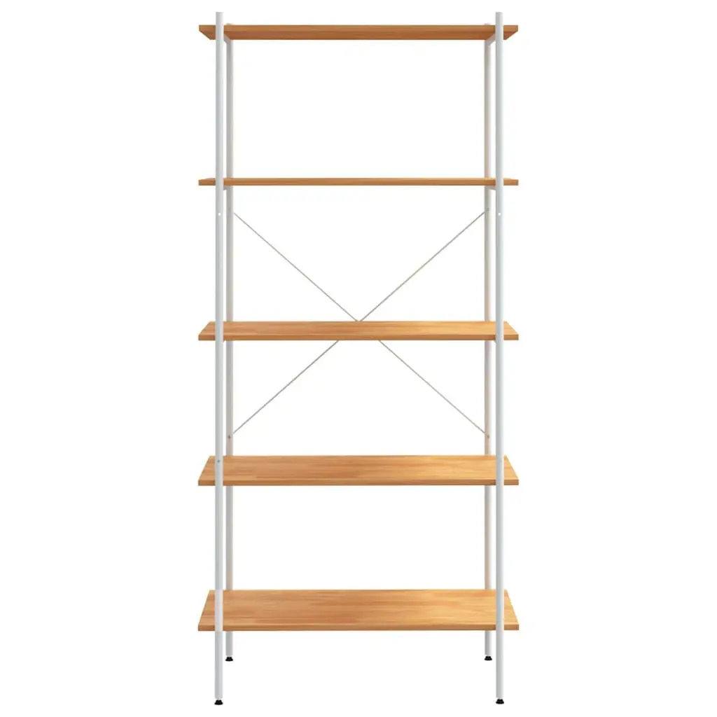 This 5-Tier Shelving Unit combines function with modern style, giving you a trendy storage solution for any indoor area. With its sleek white and oak look, it easily upgrades your office, living room, or garage while offering tons of space for books, decor, and more. Ample Storage Capacity: The shelving unit features five roomy tiers for neatly displaying books, plants, or decor, making it ideal for both storage and showing off your favorite things. Each shelf can safely hold around 33 lbs, ensuring your items are secure.Sturdy and Dependable Construction: Made from engineered wood with a strong steel frame, this shelving unit promises a solid and lasting build, so you can trust it to hold all your storage needs.Modern and Stylish Design: The sleek white and oak finish gives this shelving unit a contemporary look, making it a stunning addition to your home or office that goes with a wide range of decor styles.Versatile Functionality: Great for different settings, this unit is perfect in reading nooks, family rooms, or workspaces, showcasing books and awards while keeping everything tidy.Easy Installation: Assembly is needed, but it comes with simple instructions and all the right tools, making it a breeze to set up stylish storage.