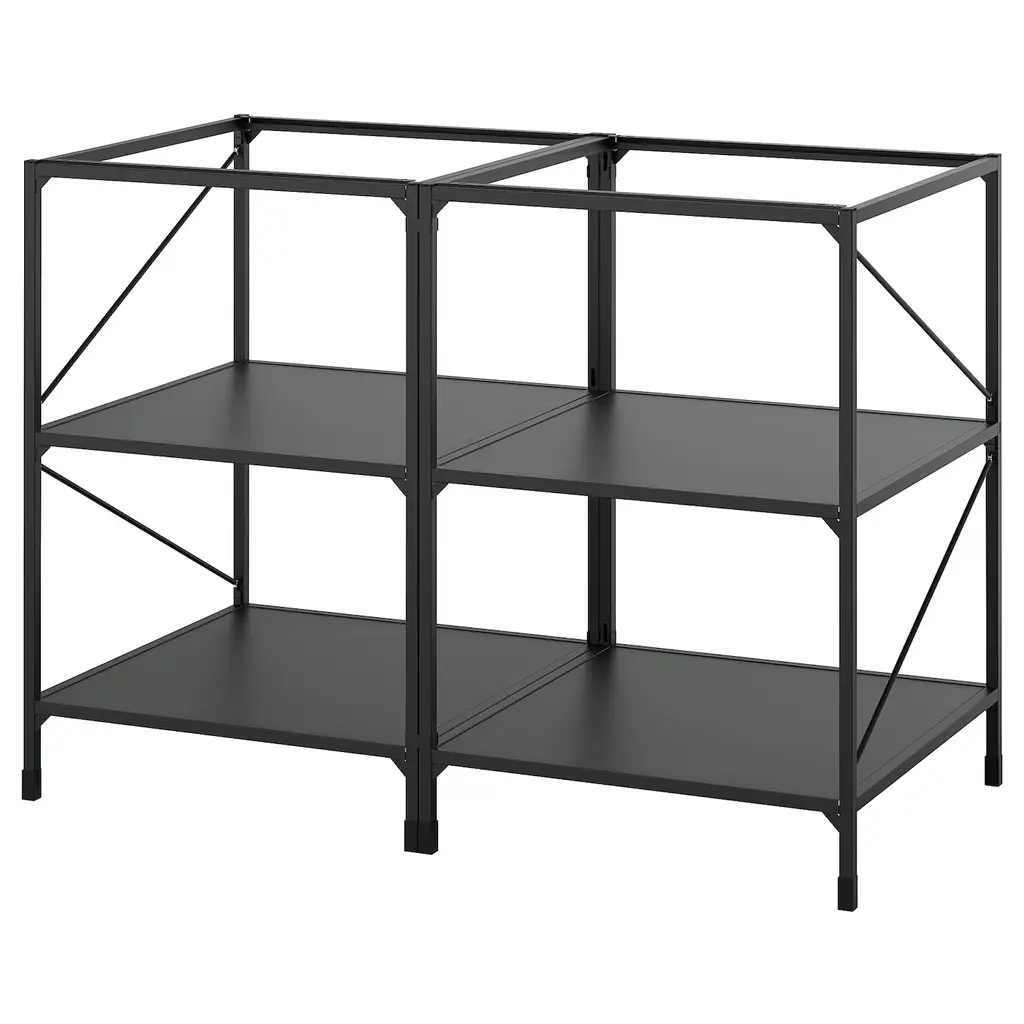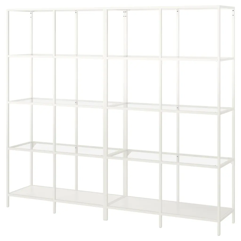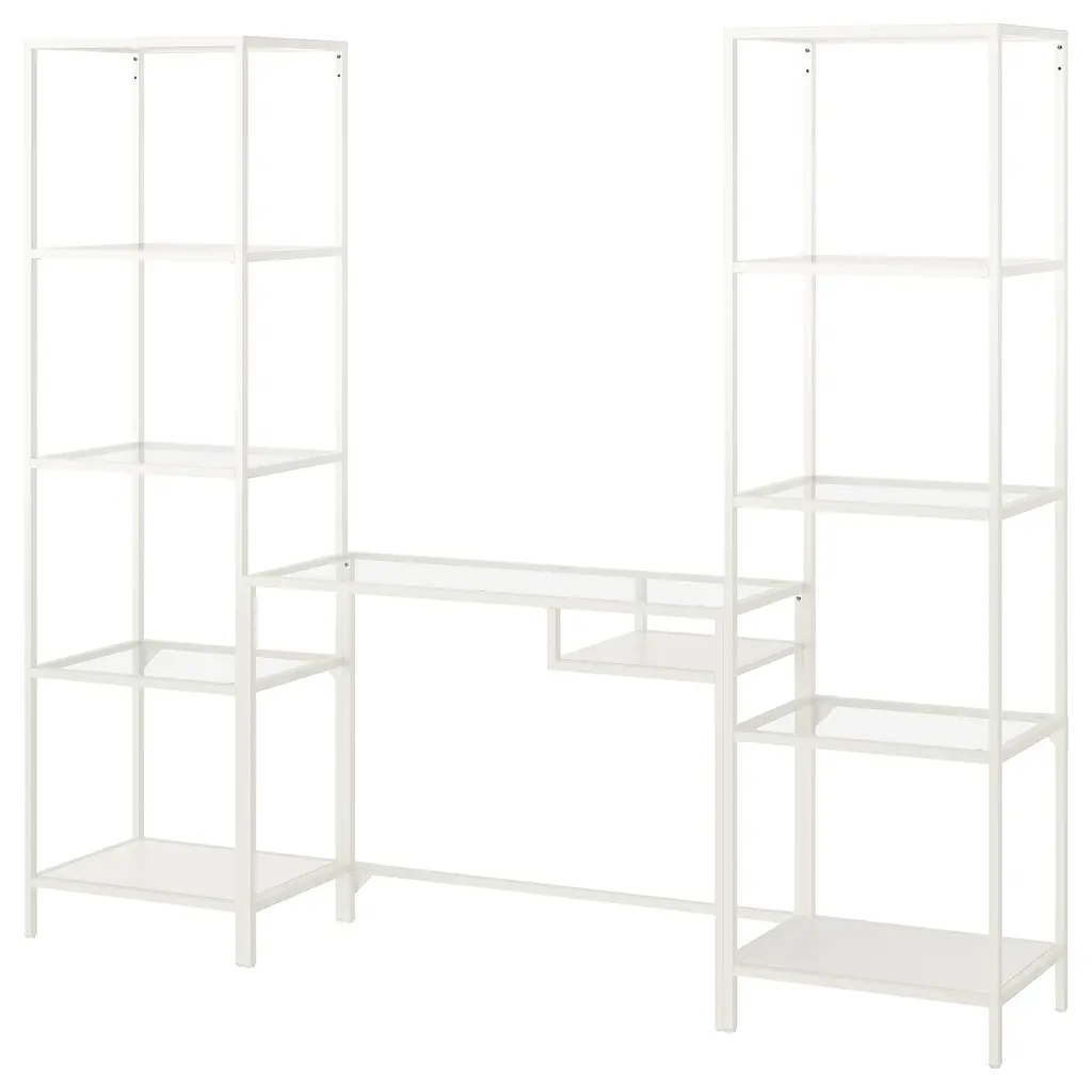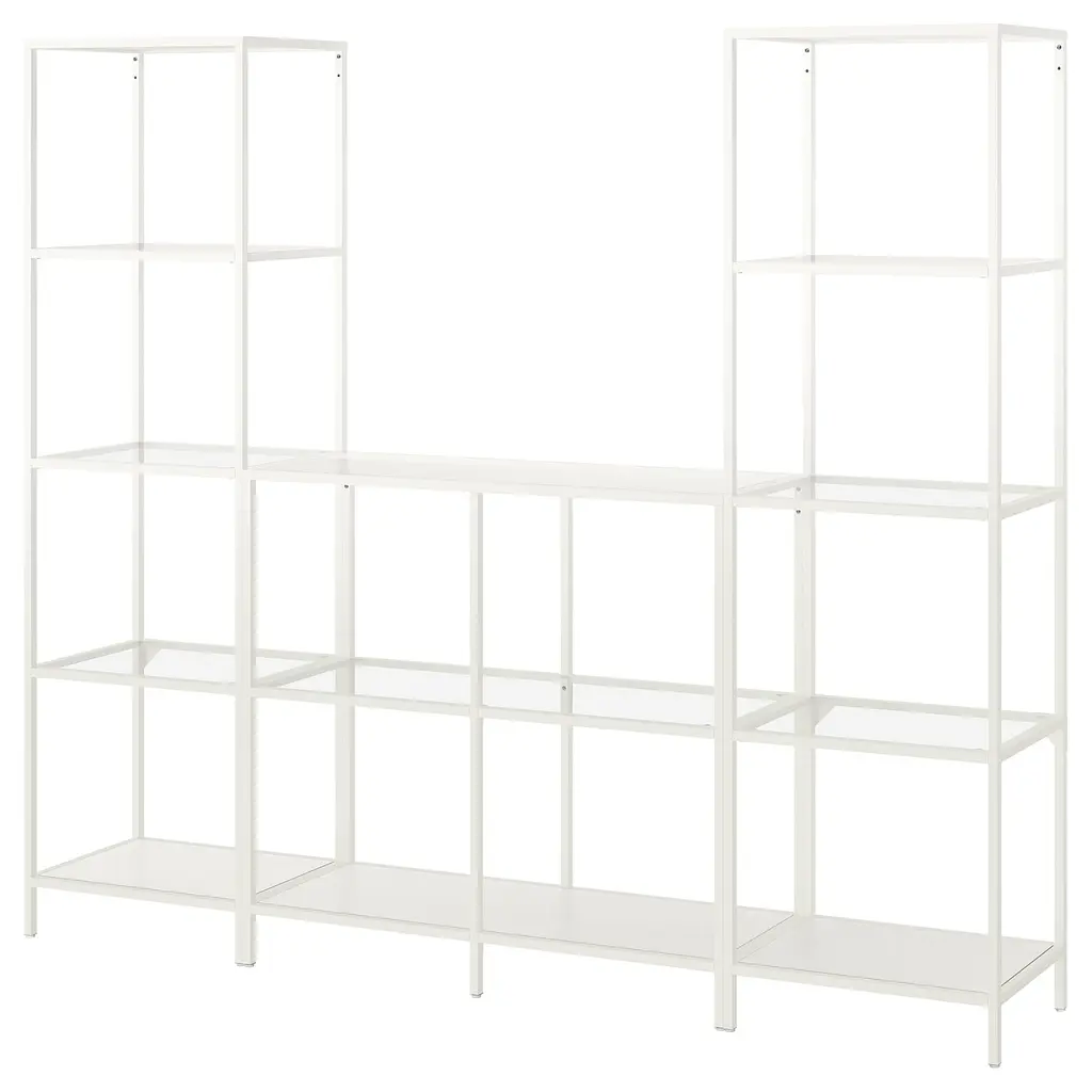 VITTSJÖ Storage combination - black-brown/glass 78 3/4x14 1/8x68 7/8 ". Adjustable feet for stability on uneven floors. Tempered glass and metal are durable materials that provide an open, airy feel. This furniture must be secured to the wall with the enclosed wall anchoring device.