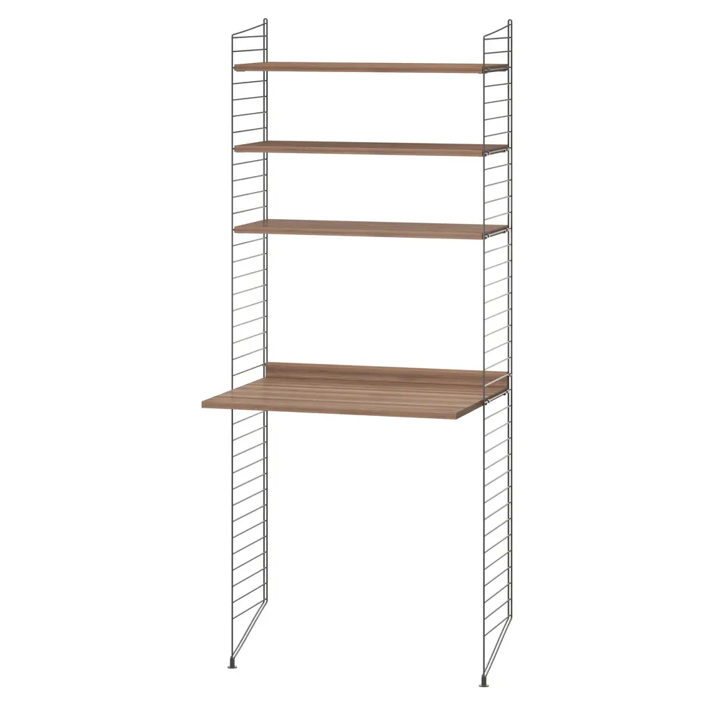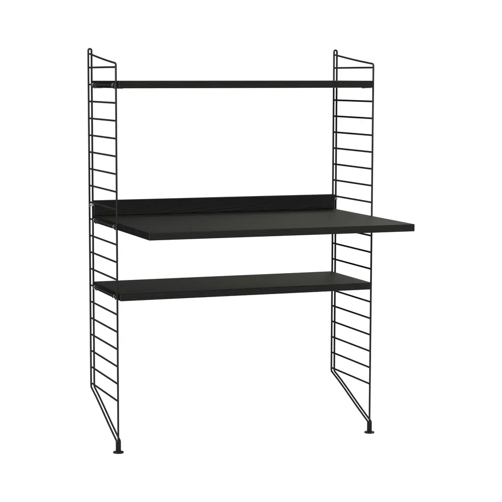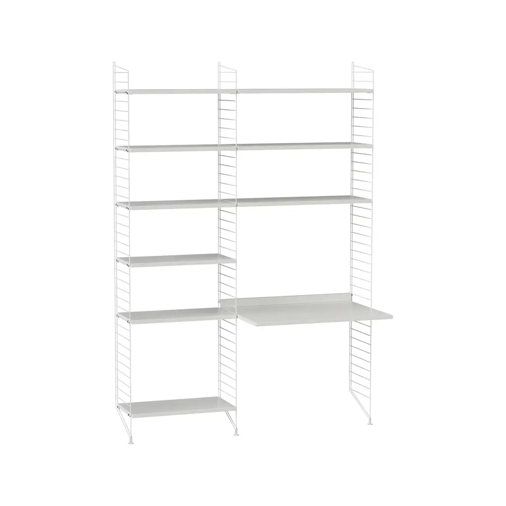 Introducing the Workspace Shelving Unit from String Furniture, the perfect compact solution for cubicles and home offices alike. This floor-mounted, one-section combination features three shelves, plus a work desk, delivering a tasteful and stylish answer to your space-saving needs. Whether you're in the office or the living room, make sure you have the best working environment possible with this sleek storage design. Highlights For in-stock custom color and configurations please call sales team at (888) 222-4410