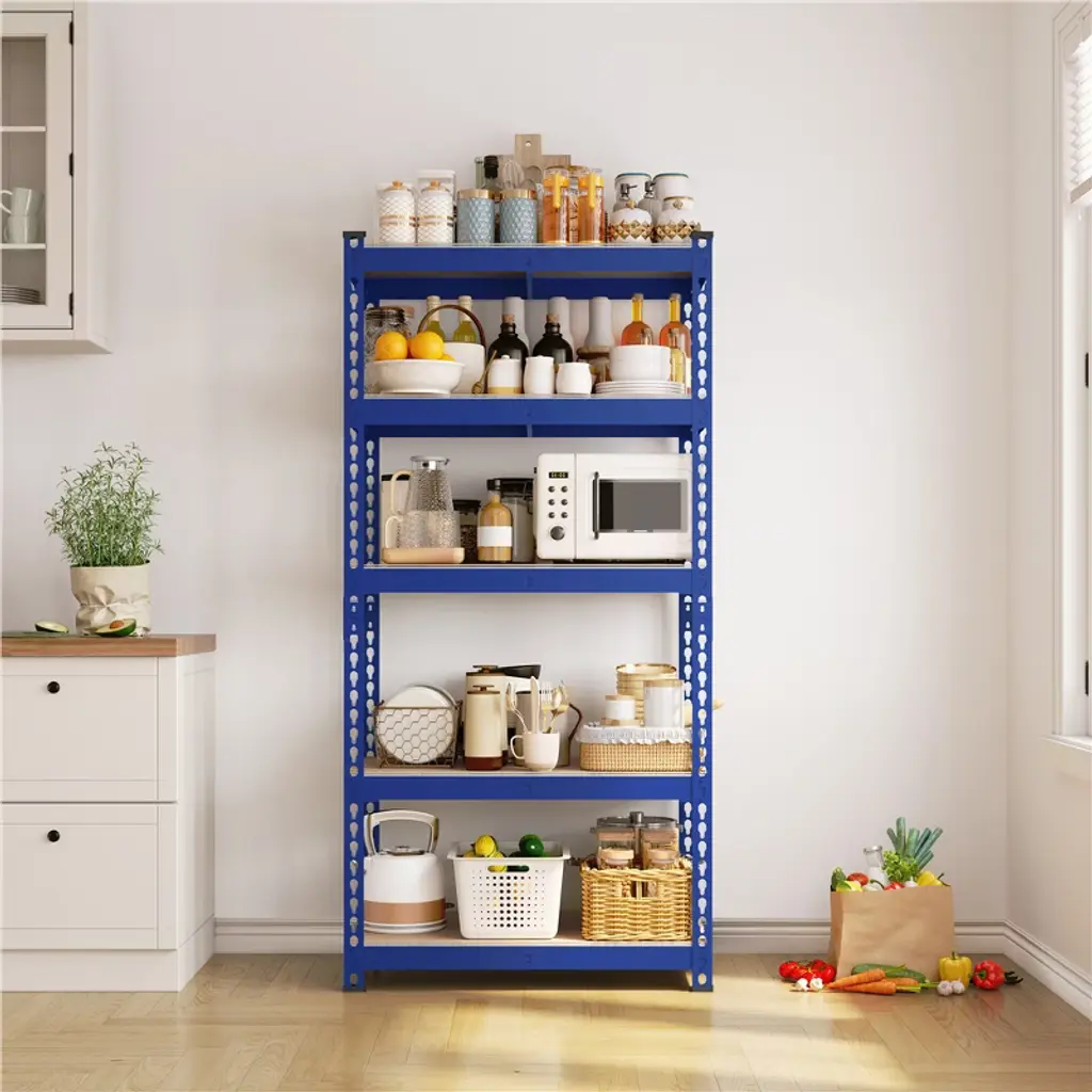 Yaheetech 5 Tiers Boltless Storage Shelf Metal Shelving Unit, Blue