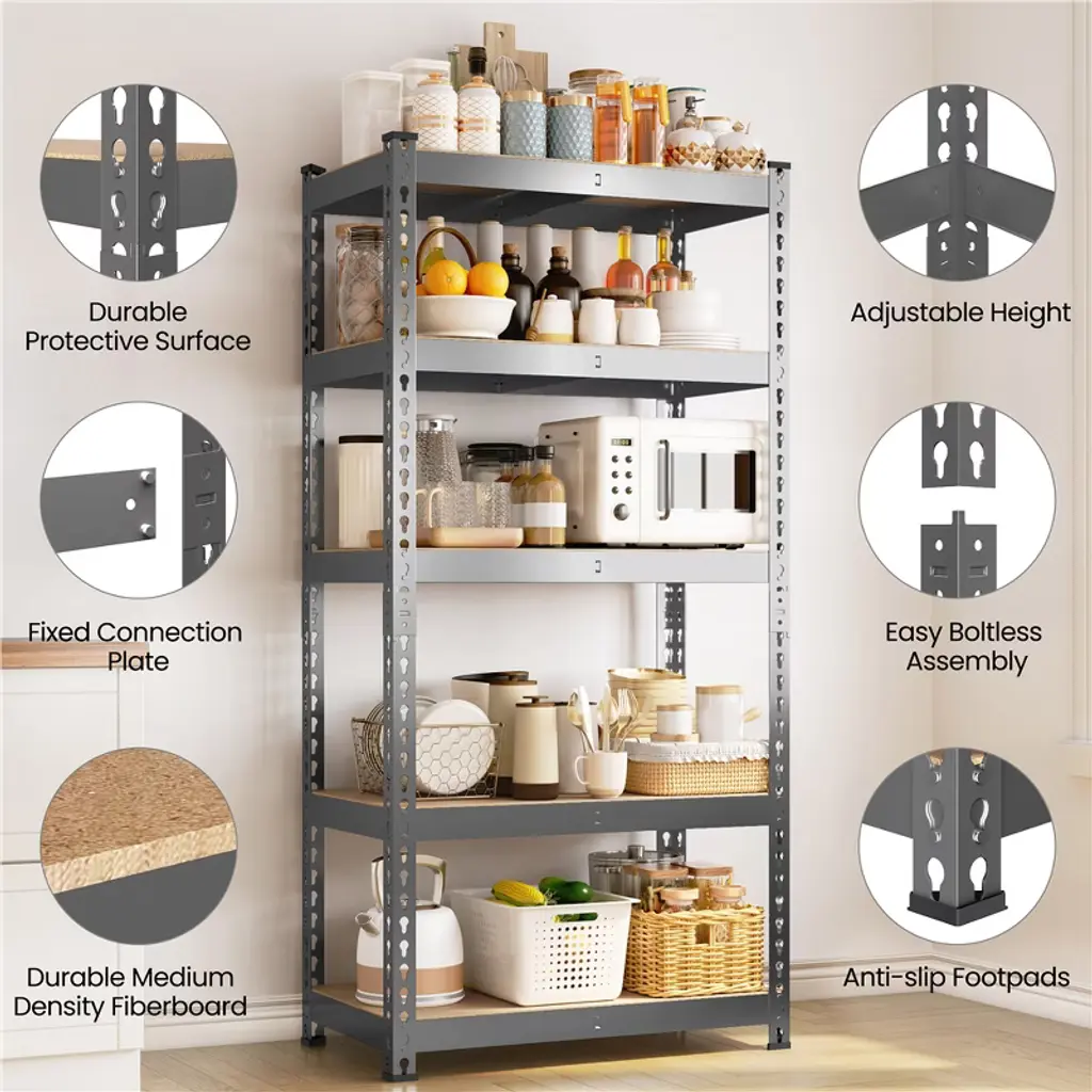 Yaheetech 5 Tiers Boltless Storage Shelf Metal Shelving Unit, Dark Gray