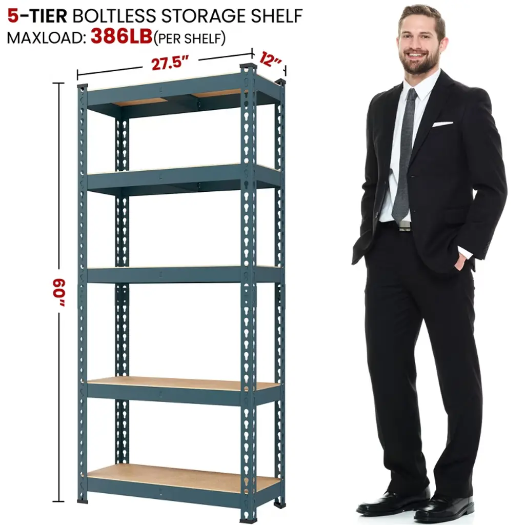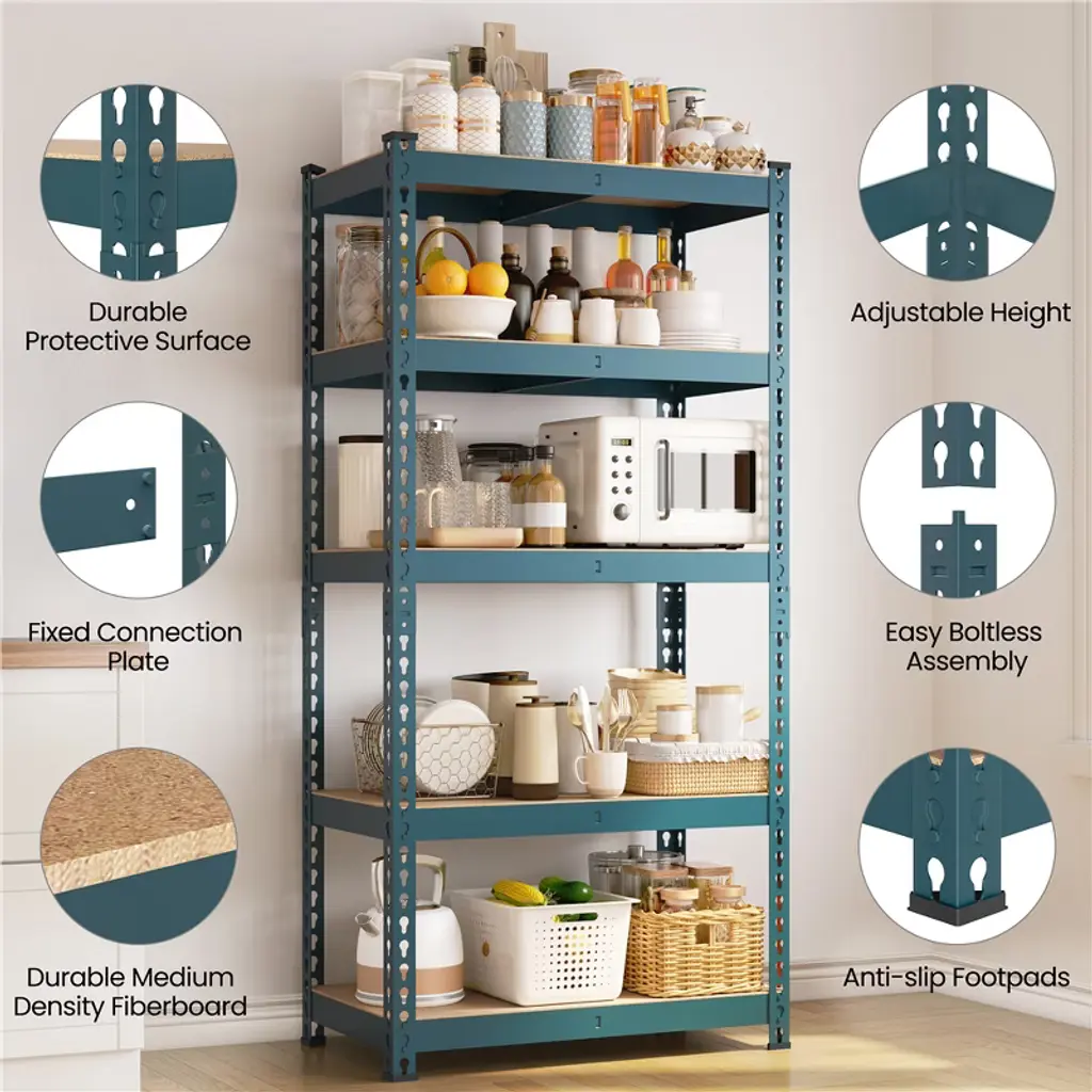 Yaheetech 5 Tiers Boltless Storage Shelf Metal Shelving Unit, Neptune Blue
