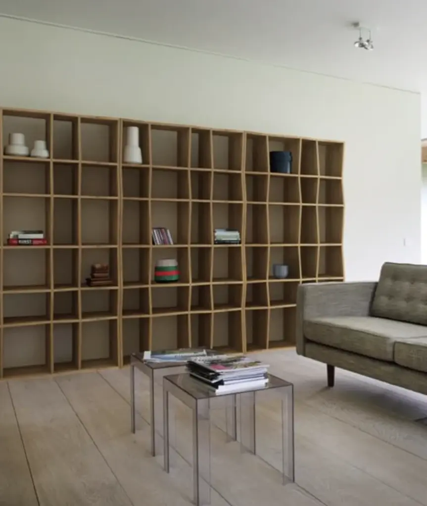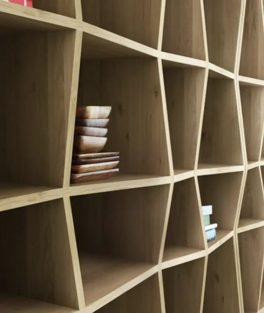 The various levels and proportions of the Mozaic shelving unit make it an interesting work of art, viewed from every angle. Combine several units to make an even greater impression.