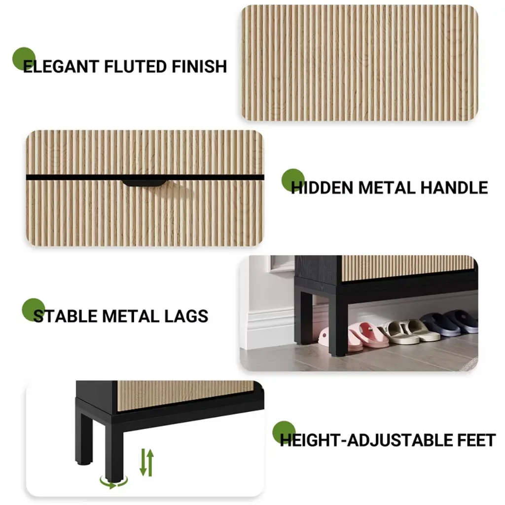 4-drawer Shoe Cabinet - Farmhouse Fluted Design With Metal Legs, Slim Entryway Organizer For Foyer/hallway, Black+oak