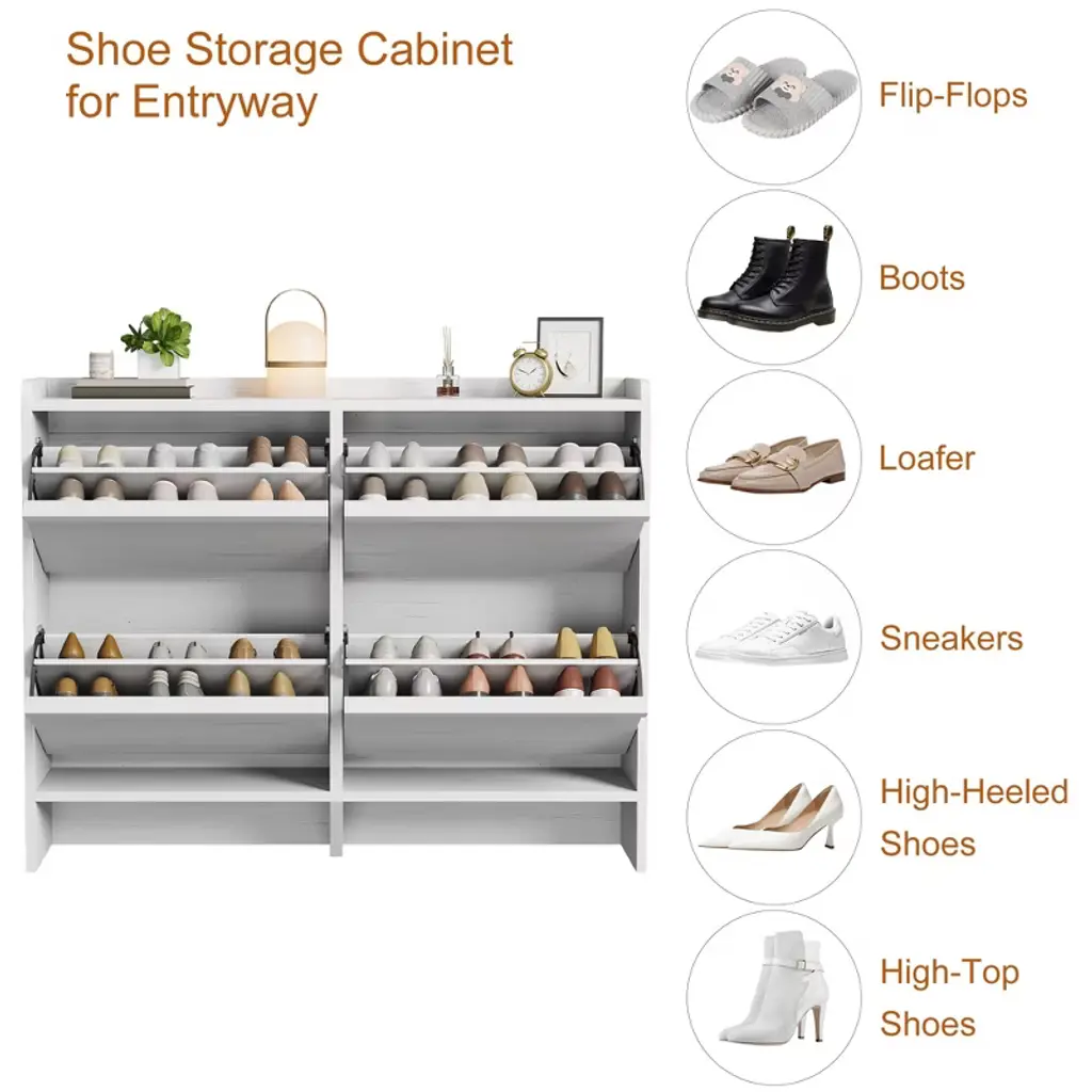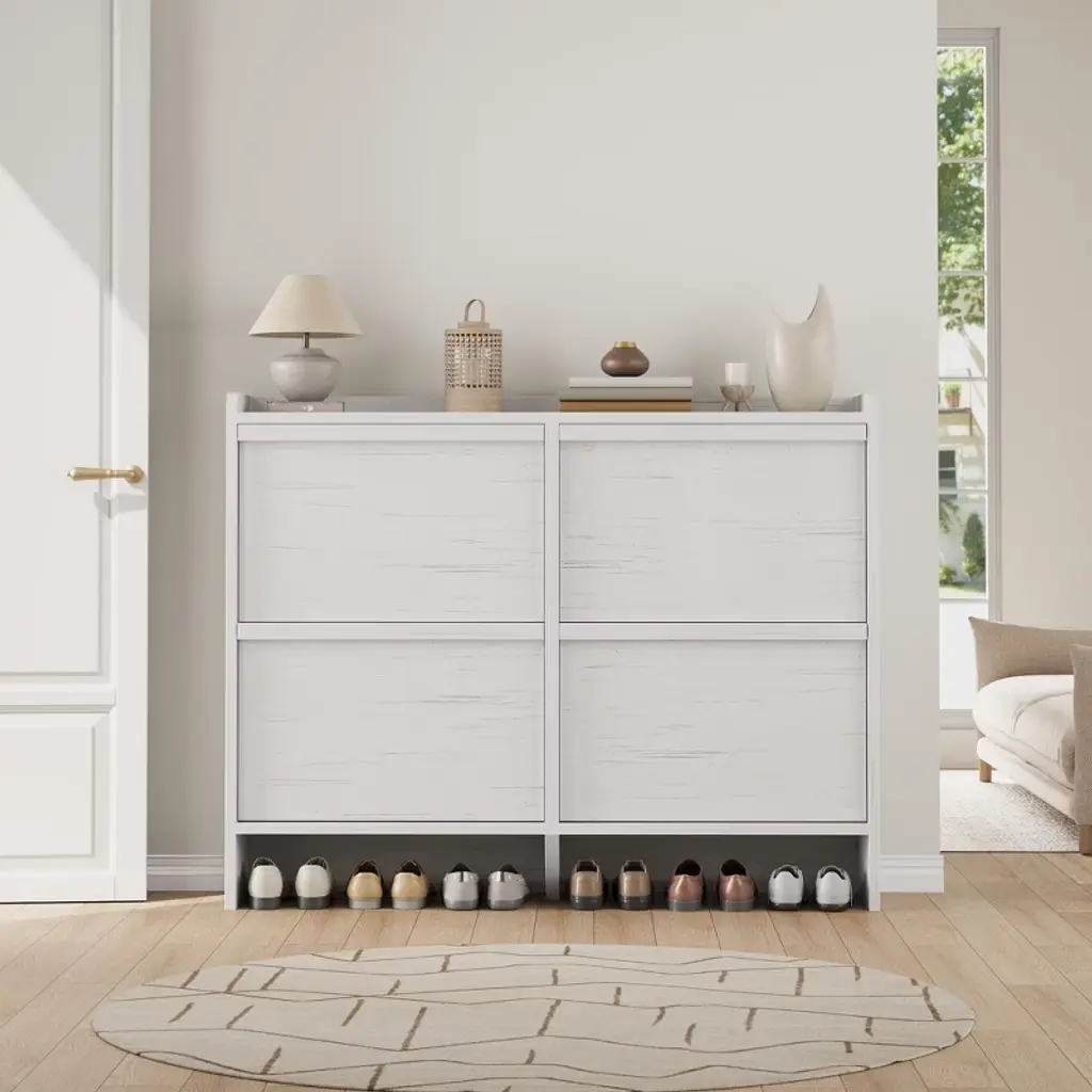 4 Shoe Cabinet With Flip Drawers, Wooden Shoe Cabinet With Adjustable Shelf, Freestanding Shoe Organizer, Hidden Shoe Storage For Entryway Hallway