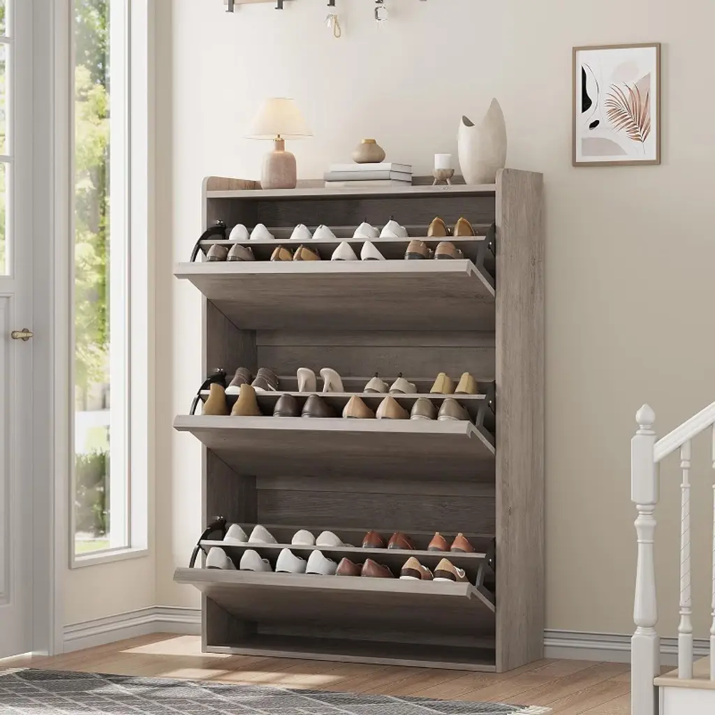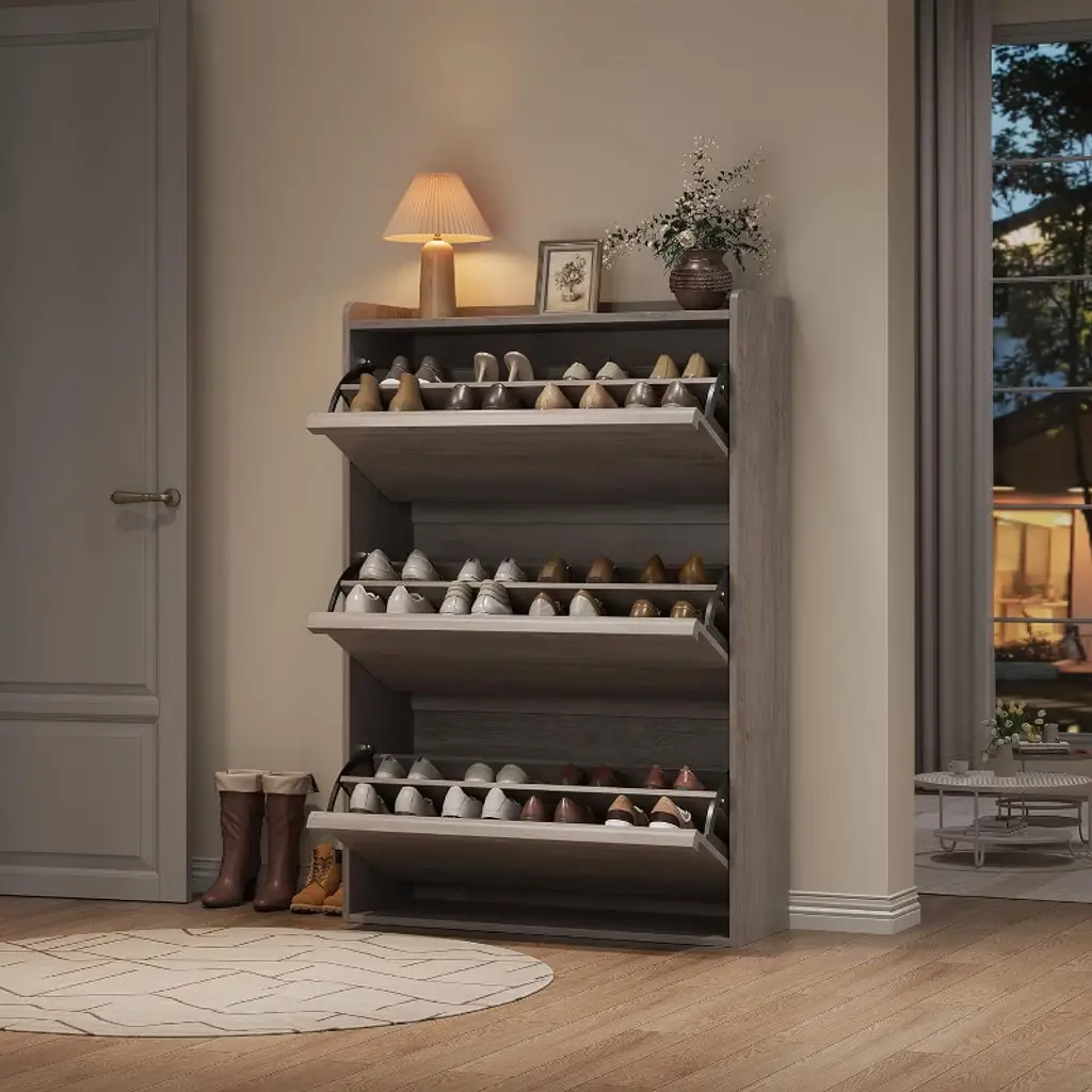 Acekool 3 Flip Drawer Shoe Cabinet With Adjustable Shelves, Hidden Shoe Organizer For Entryway – Gray
