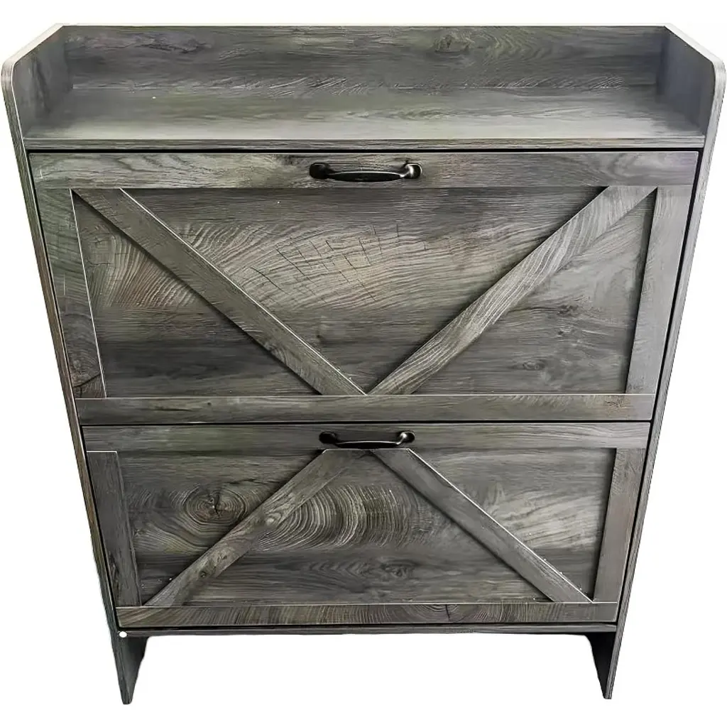 "Shoe Cabinet" & "Shoe Storage" ¨C TruAIR Black Slim Shoe Organizer (2 Flip Drawers, 5 Storage Levels, 41.12 lbs)Modern Farmhouse DesignSleek black finish with metal handleSlim profile fits narrow entrywaysLarge 5-Level Capacity2 flip drawers with dual-tier adjustable panelsExtra bottom space for various shoe sizesMultifunctional StorageTop surface with raised edges for essentialsHolds shoes + accessories (keys/wallets)Sturdy & Safe ConstructionMDF frame with metal pedestal legsIncludes 2 anti-tip devices (41.12 lbs)Easy Assembly & CareLabeled components + included toolsWipe-clean surface maintenance