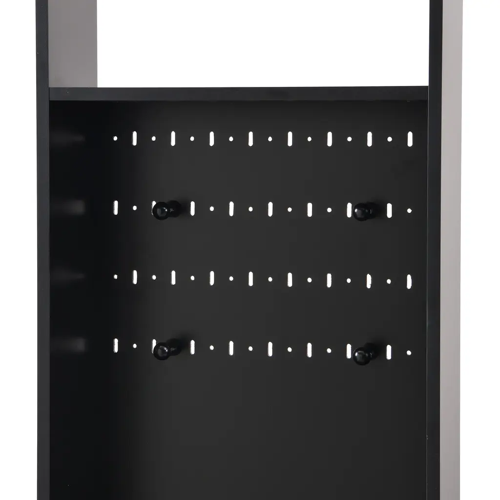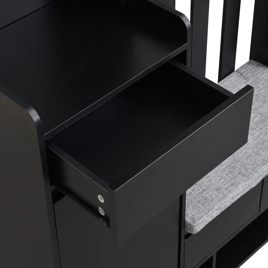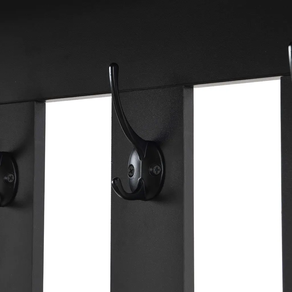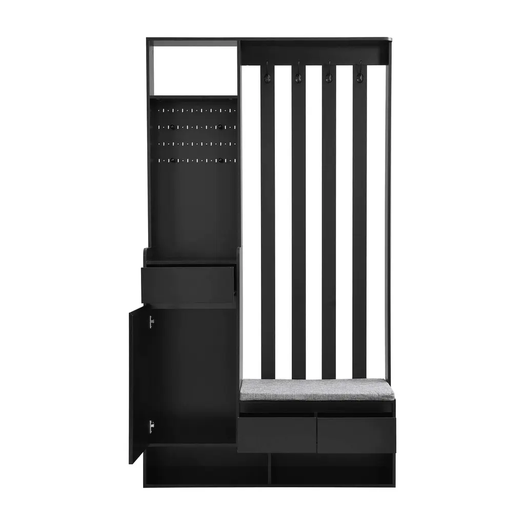 Contemporary Hall Tree Storage With Cushioned Storage Bench,multifunctional Hallway Shoe Cabinet With Pegboard - Black