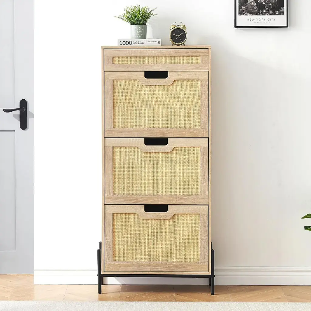 Coucheta Natural Rattan Shoe Cabinet With 1 Pull-out Drawer, Narrow Shoe Storage Cabinet With 3-tier Adjustable Shelves