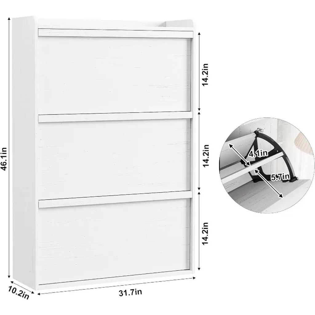 Dobleepy 3-drawer Shoe Cabinet, Wooden Organizer With Flip Drawers & Adjustable Shelf For Entryway, Antique White