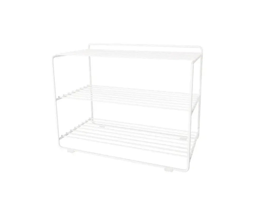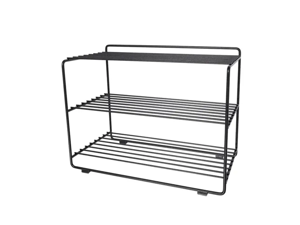 Downtown is a shoe shelf inspired by the Nordic functionalism style. With a width of only 50 cm and 3 shelves makes it as easily placed as it is space efficient. For a cohesive and stylish hallway, combine Downtown Shoe shelf with Uptown Hat Rack . The shoe shelf is produced in Västergötland, Sweden and made from partially recycled metal wire (the Ø 6mm metal wire is 100% recycled while the Ø8 mm is between 15-20% recycled).The City collection contours houses, skyscrapers, and the grid we live in. It's form enhances the function. Store easy with a conscious mind.Made of powder coated metal wire that is 100% recycled. Produced in Värstergötland, Sweden.