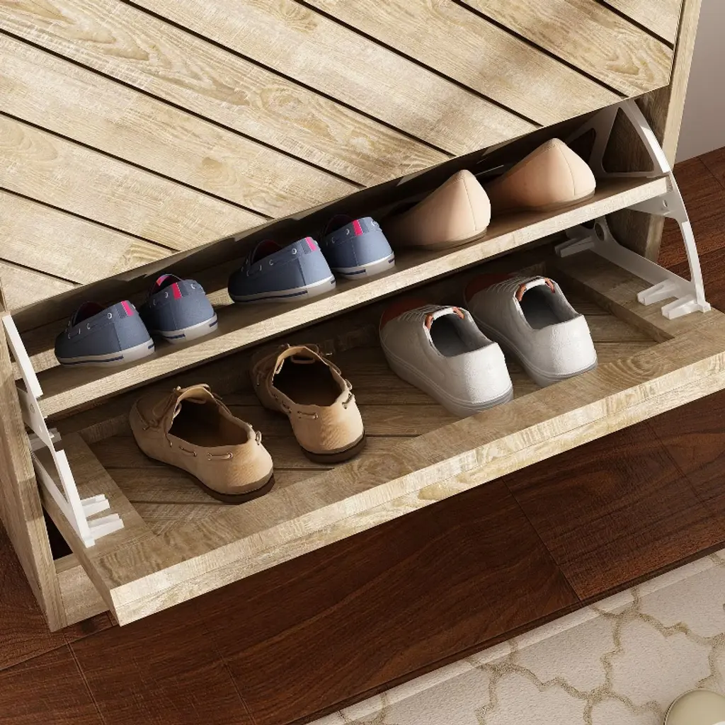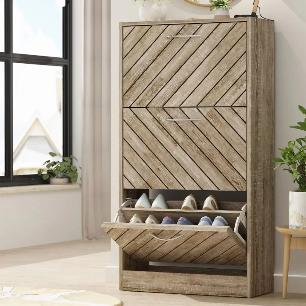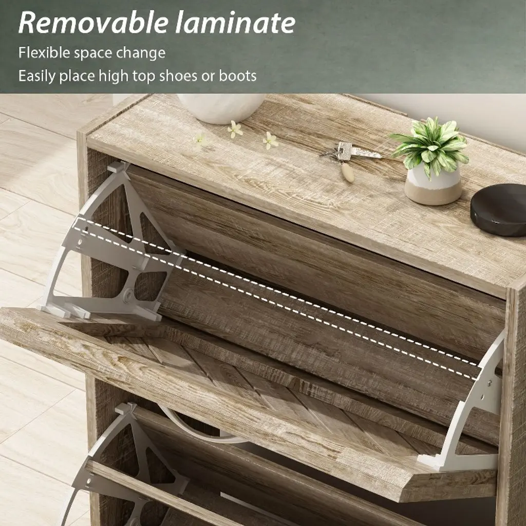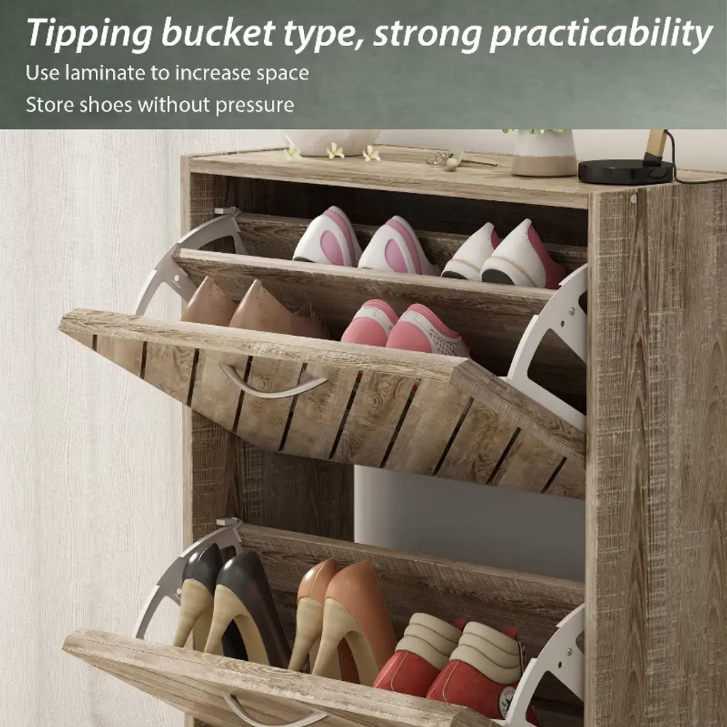 Famapy Brown Woodgrain 3 Drawer Flip Up Shoe Cabinet Openwork